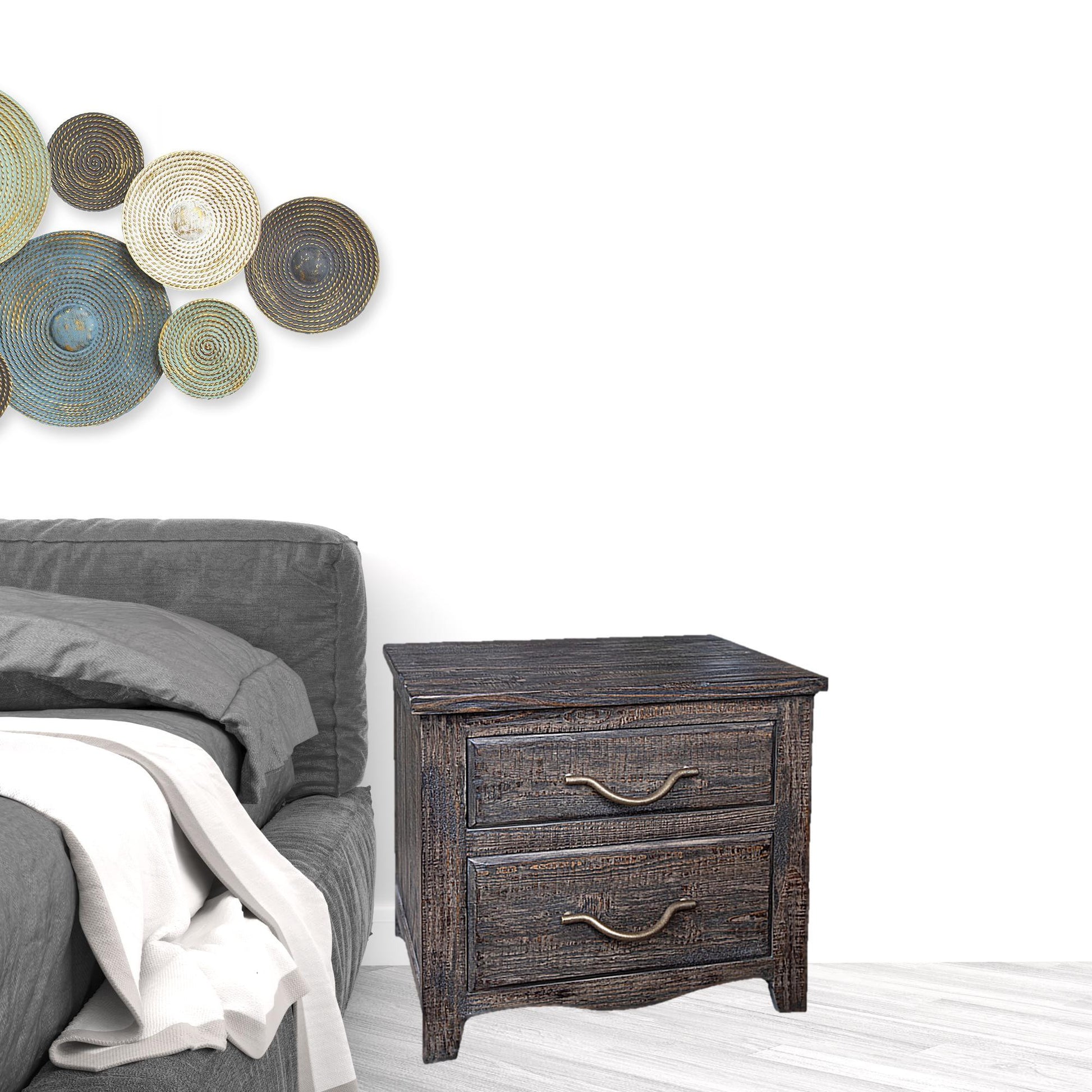 Give your room the look and feel of 5-star accommodations with this 23" brown two drawer nightstand. The piece has 2 drawers to store your bedtime essentials close to you as you rest. The unsung hero of the bedroom, this nightstand is perfect for keeping a glass of water, lamp, alarm clock, jewelry and more, close by and easily accessible. Versatile in use this nightstand would also work as a great end table in the living room, hallway, or office. 22.5" H x 23.5" W x 16.25" D