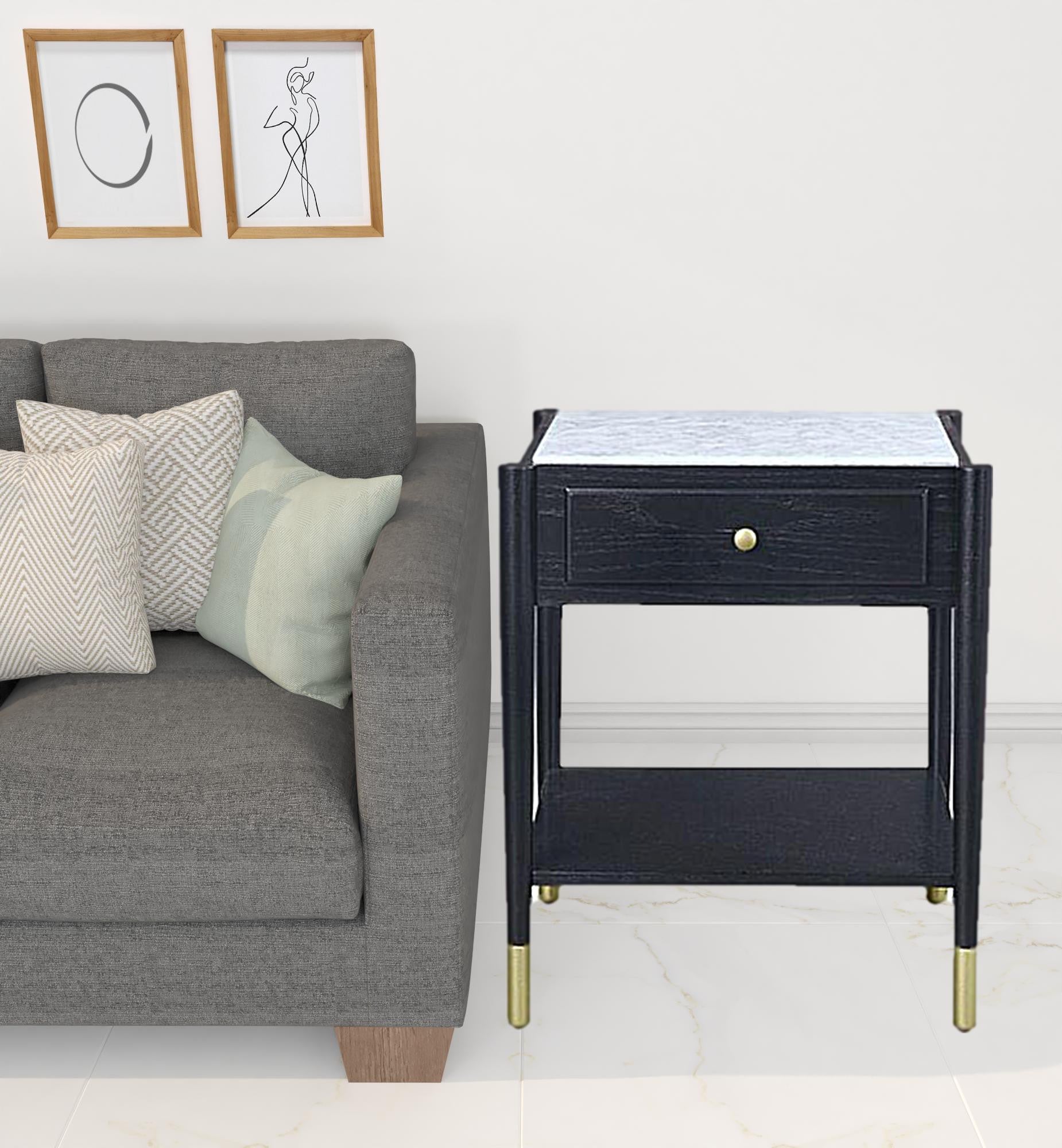 Show off your exquisite taste with this 24" black and white marble and solid wood rectangular end table. The base of this table is made from solid wood in a black color that is a nice contrast to the white marble tabletop. A great accent on either side of the sofa or bed, this adorable end or side table is just what you need. You can also use it as an entryway table to hold your keys. 24" H x 20" W x 18" D