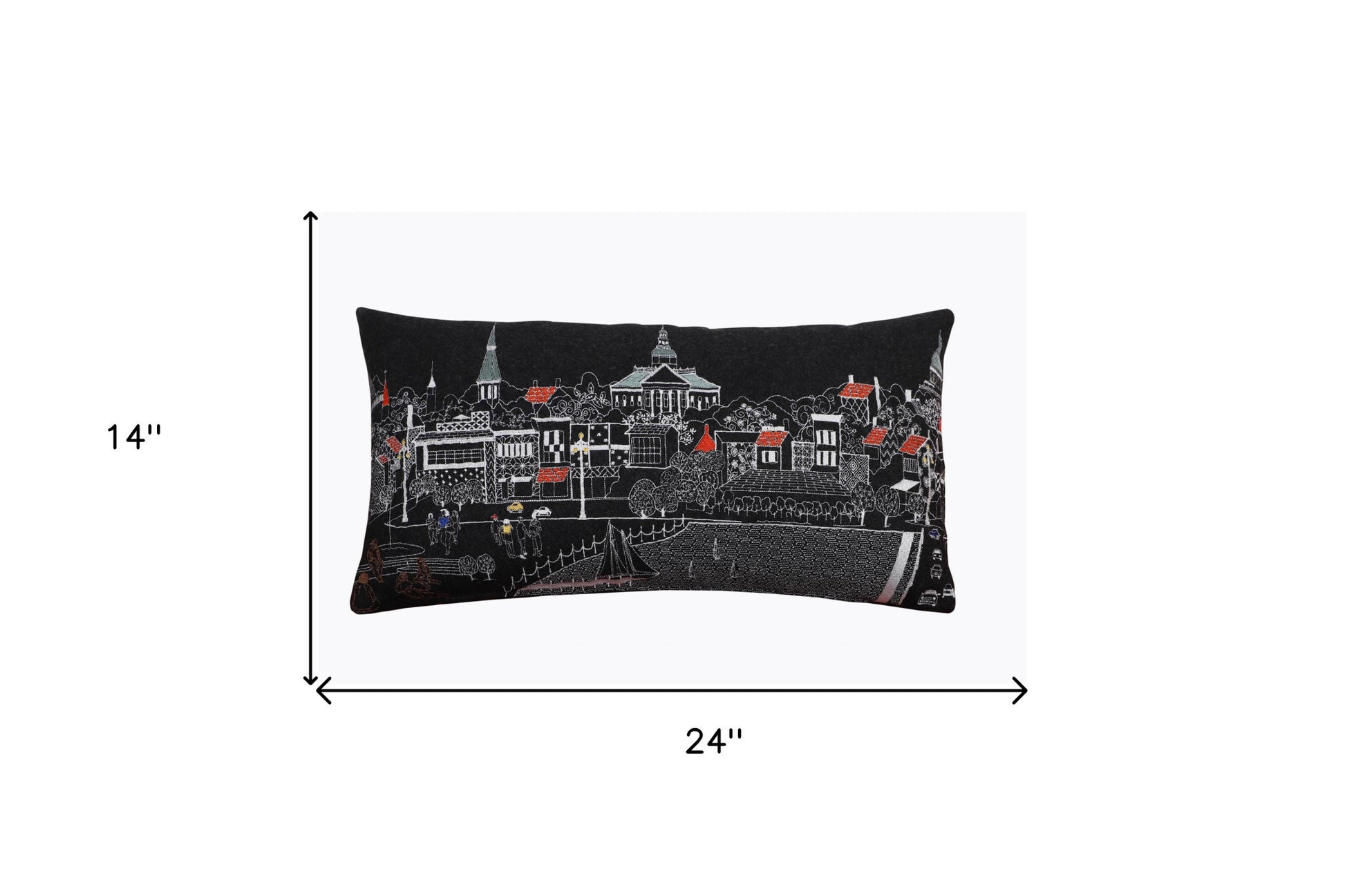 24" Black Annapolis Nighttime Skyline Lumbar Decorative Pillow