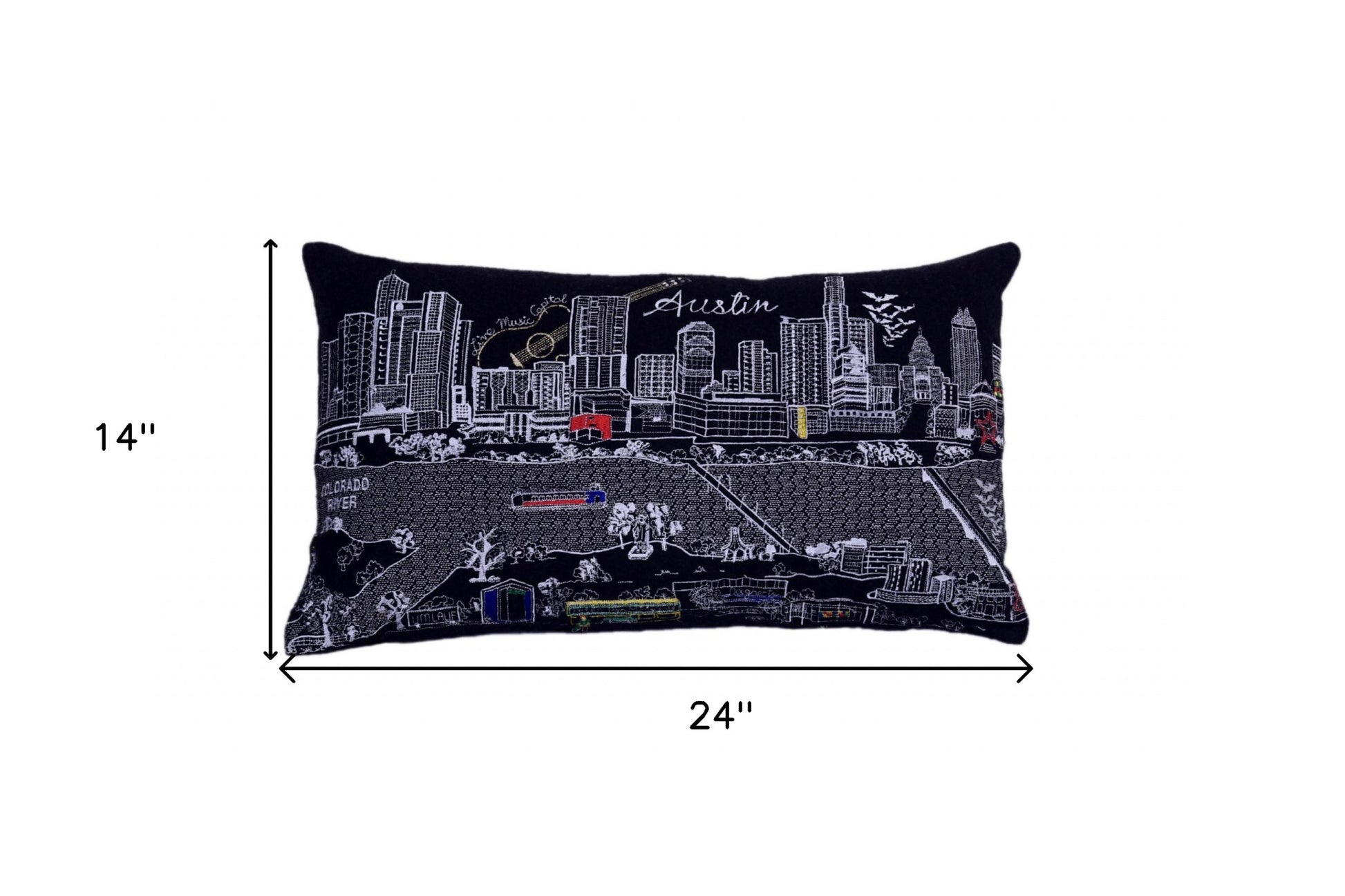 24" Black Atlanta Nighttime Skyline Lumbar Decorative Pillow