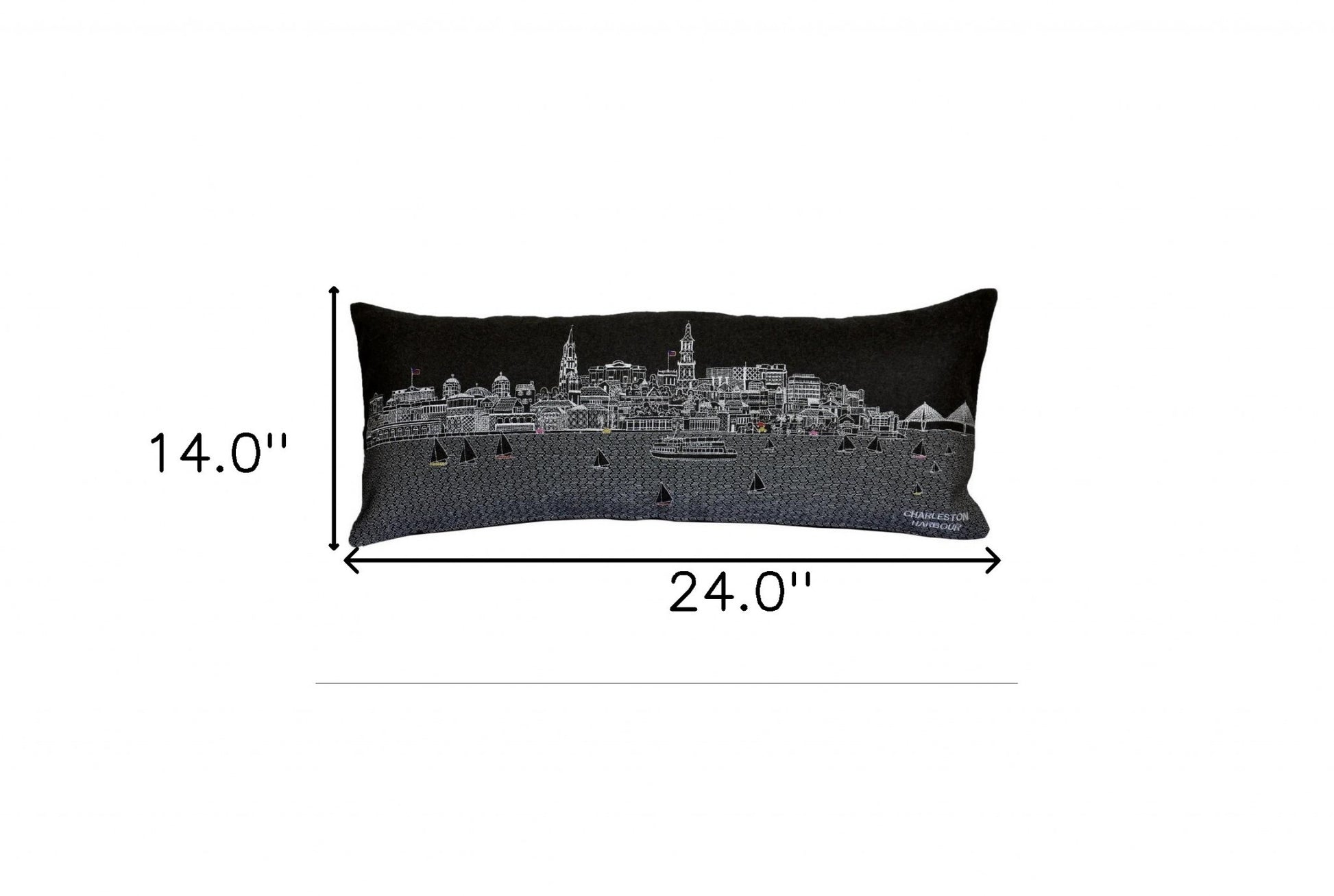 24" Black Charleston Nighttime Skyline Lumbar Decorative Pillow