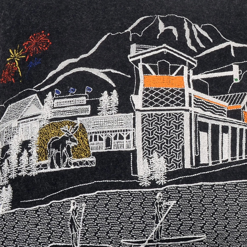 Showcase this famous city, with our Black Color Jackson Nighttime Skyline Prince Size Lumbar Decorative Pillow. The Nighttime view of Jackson, is picture perfect. The gorgeous art features many famous landmarks and references for this destination city, rendering a modern whimsical way to bring this iconic cityscape to life. Made of a wool/nylon blend, this high quality stitched decorative pillow features white on black embroidered artwork mixed with pops of color that highlight important and recognizable icons from this popular Wyoming city known for its outdoor sports. This pillow makes a great gift, decorative accent and conversation piece. 4" x 24" x 14"