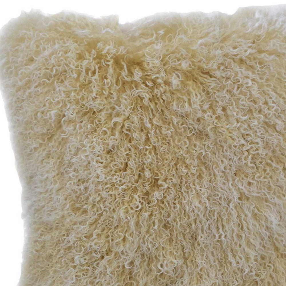 24" Gold Genuine Tibetan Lamb Fur Pillow With Microsuede Backing
