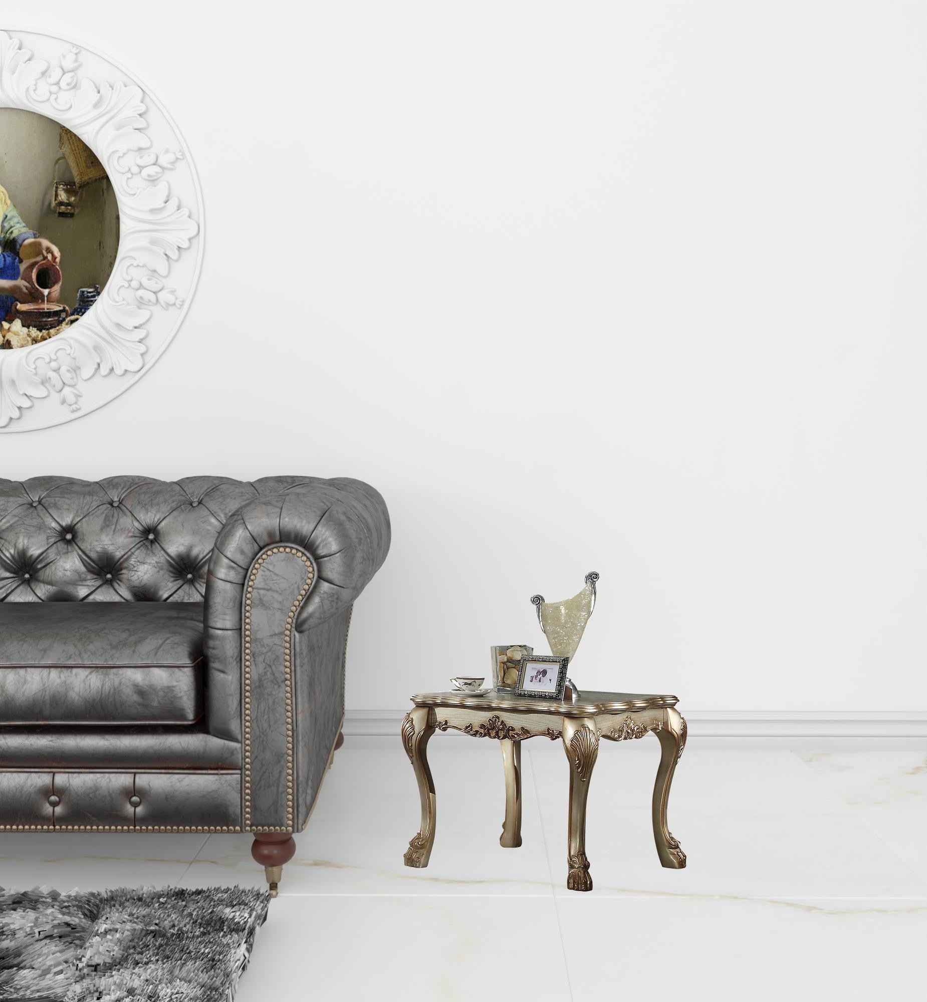 Distinctive in style, the 24" gold patina & bone manufactured wood square end table radiates a versatile charm. This accent or side table is a high quality piece, expertly made of high grade manufactured wood. This table is made from manufactured wood in a gold patina & bone color throughout the base and top. An ideal location for placing your snacks and drinks, and a place to keep your lamp, frames, or other accessories. You can also use it as an entryway table to hold your keys. 24" H x 28" W x 28" D