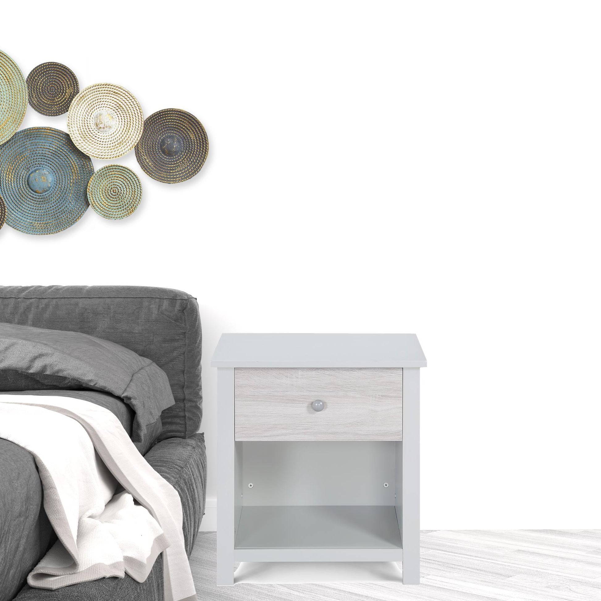 Good looking design and practical styling meet to form this 24-inch gray one drawer nightstand. Made of high quality solid wood that is built to last. The easy open drawer allows you hidden storage to keep your essentials close at hand. An easy-access shelf gives you additional storage and display space. The unsung hero of the bedroom, this nightstand is perfect for keeping a glass of water, lamp, alarm clock, jewelry, and more, close by and easily accessible. Look no further than this nightstand to accommodate all your needs and upgrade the style of your bedroom. 24-inch H x 22-inch W x 17.75-inch D