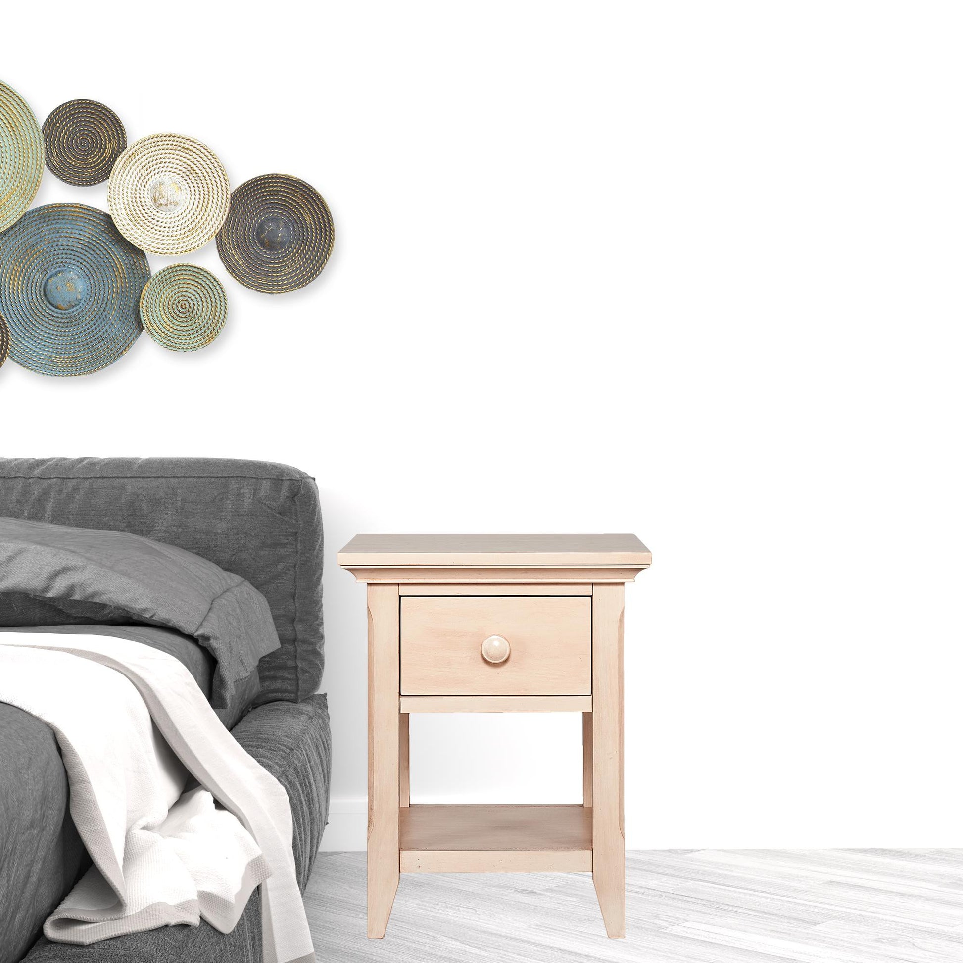 Good looking design and practical styling meet to form this 24-inch sand one drawer nightstand. Made of high quality solid wood that is built to last. Includes a drawer to help keep your essentials close by and hidden. An easy-access shelf gives you additional storage and display space. The unsung hero of the bedroom, this nightstand is perfect for keeping a glass of water, lamp, alarm clock, jewelry, and more, close by and easily accessible. Look no further than this nightstand to accommodate all your needs and upgrade the style of your bedroom. 24-inch H x 26-inch W x 18-inch D
