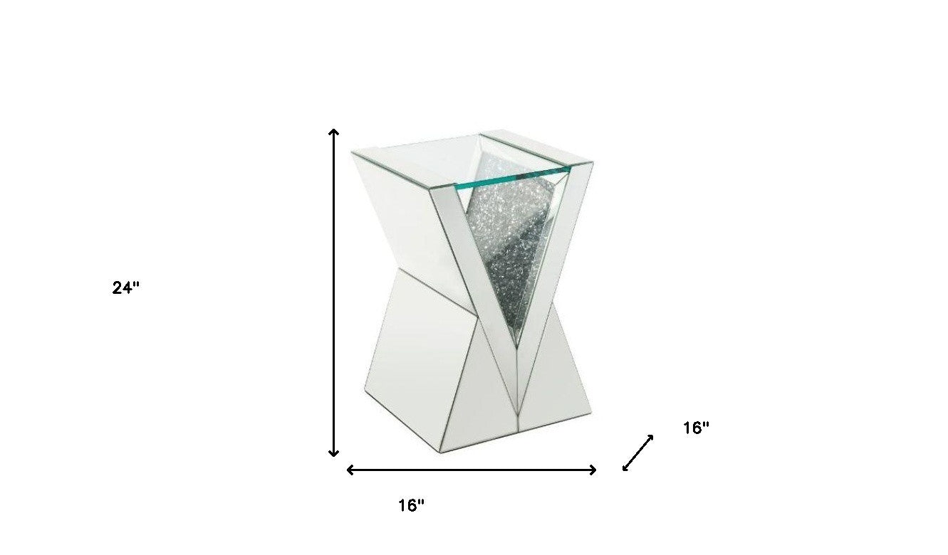 24" Silver And Clear Glass Square Mirrored End Table
