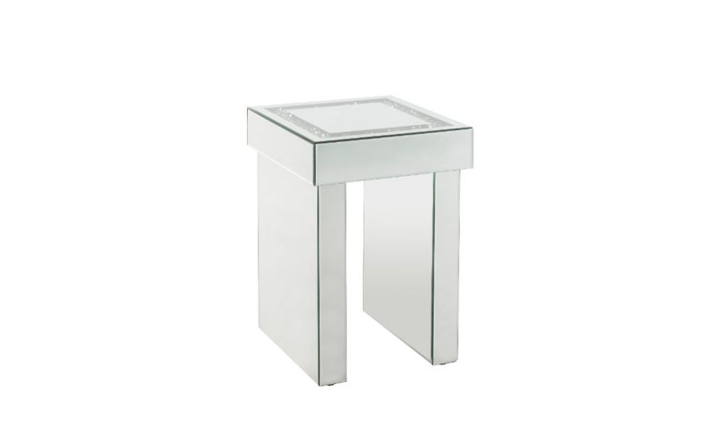 Optimize your space and add some charm to your room with the 24" silver glass and manufactured wood square mirrored end table. The silver coloration runs throughout this good looking manufactured wood and glass table. Reflective pieces of mirrored glass give this table a glamorous and unique look. Side tables are a great way to flank your sofa, use as an accent next to your favorite chair, or can even be used bedside. You can match it with other pieces to get the ideal look for your place. 24" H x 16" W x 16" D