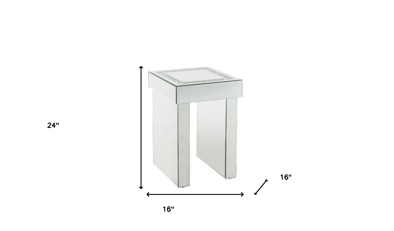 24" Silver Glass And Manufactured Wood Square Mirrored End Table