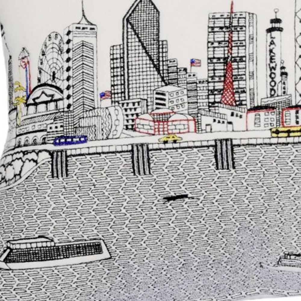 24" White Dallas Daylight Skyline Lumbar Decorative Pillow