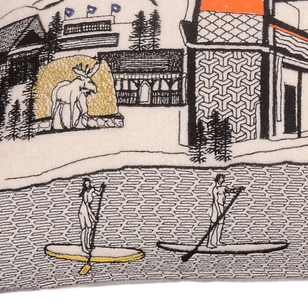 Showcase this famous city, with our Cream Color Jackson Daylight Skyline Prince Size Lumbar Decorative Pillow. The daylight view of Jackson, is picture perfect. The gorgeous art features many famous landmarks and references for this destination city, rendering a modern whimsical way to bring this iconic cityscape to life. Made of a wool/nylon blend, this high quality stitched decorative pillow features black on white embroidered artwork mixed with pops of color that highlight important and recognizable icons from this popular Wyoming city known for its outdoor sports. This pillow makes a great gift, decorative accent and conversation piece. 4" x 24" x 14"