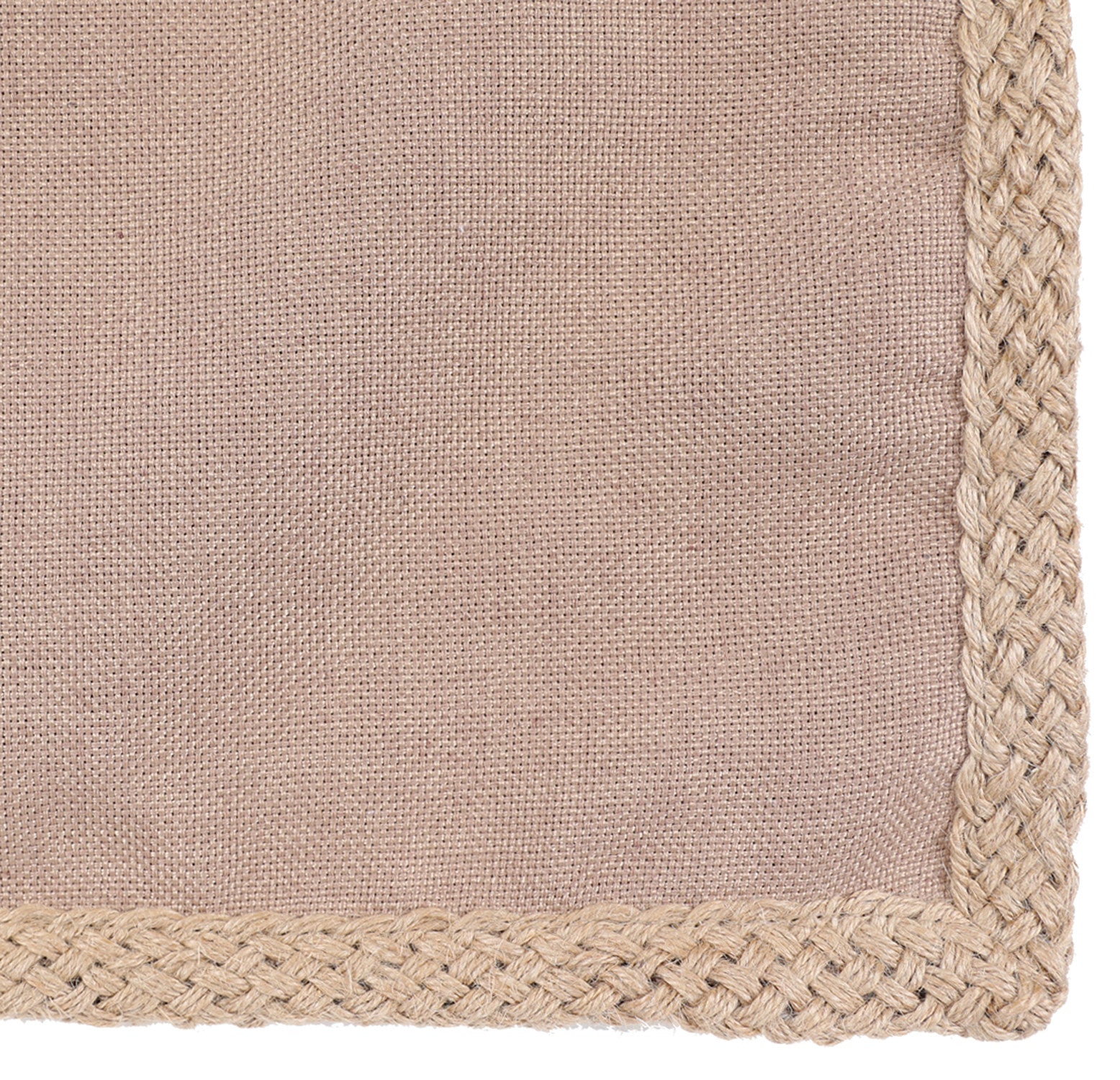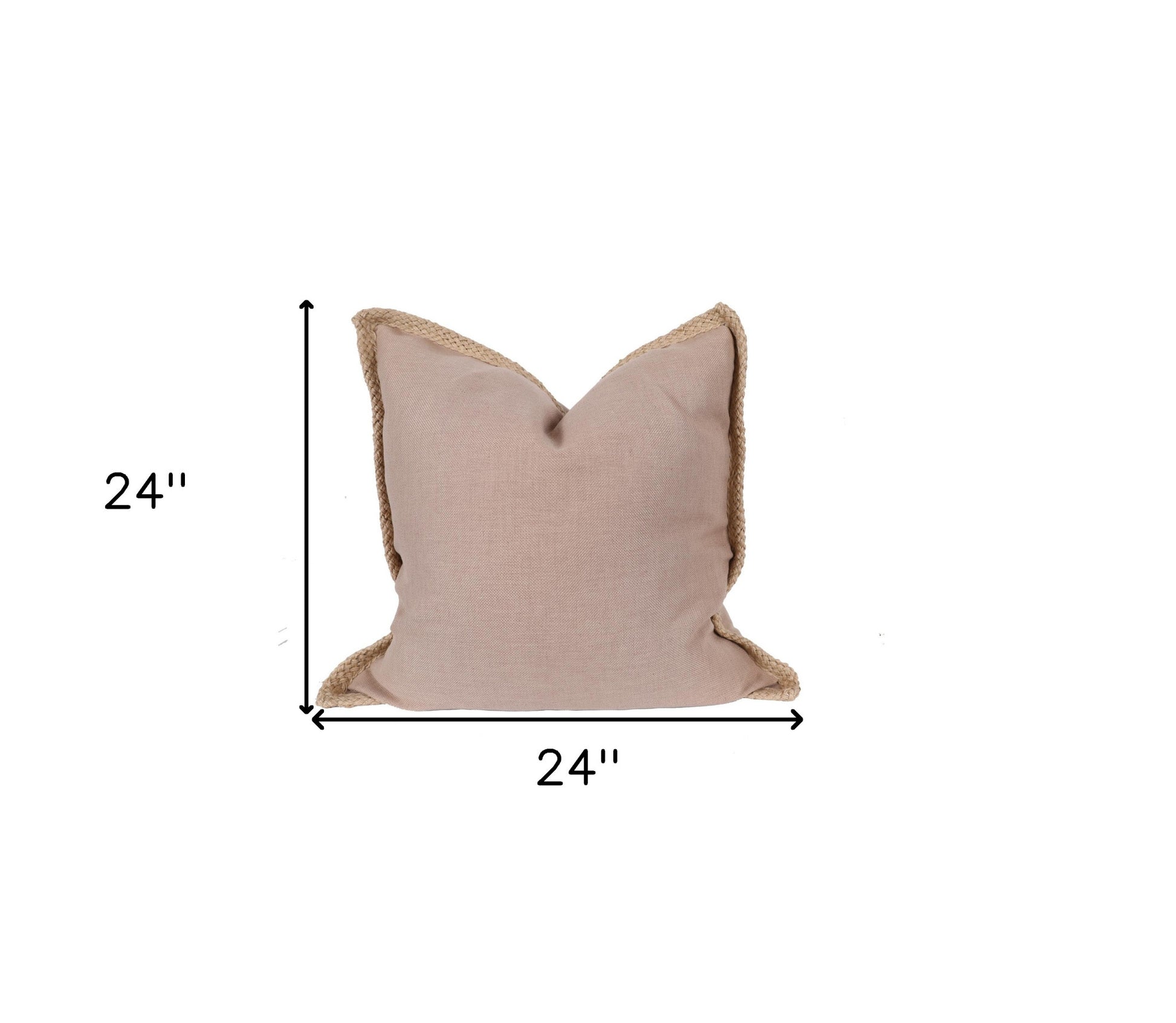 24" X 24" Beige and Brown Polyester Zippered Pillow with Jute Trim