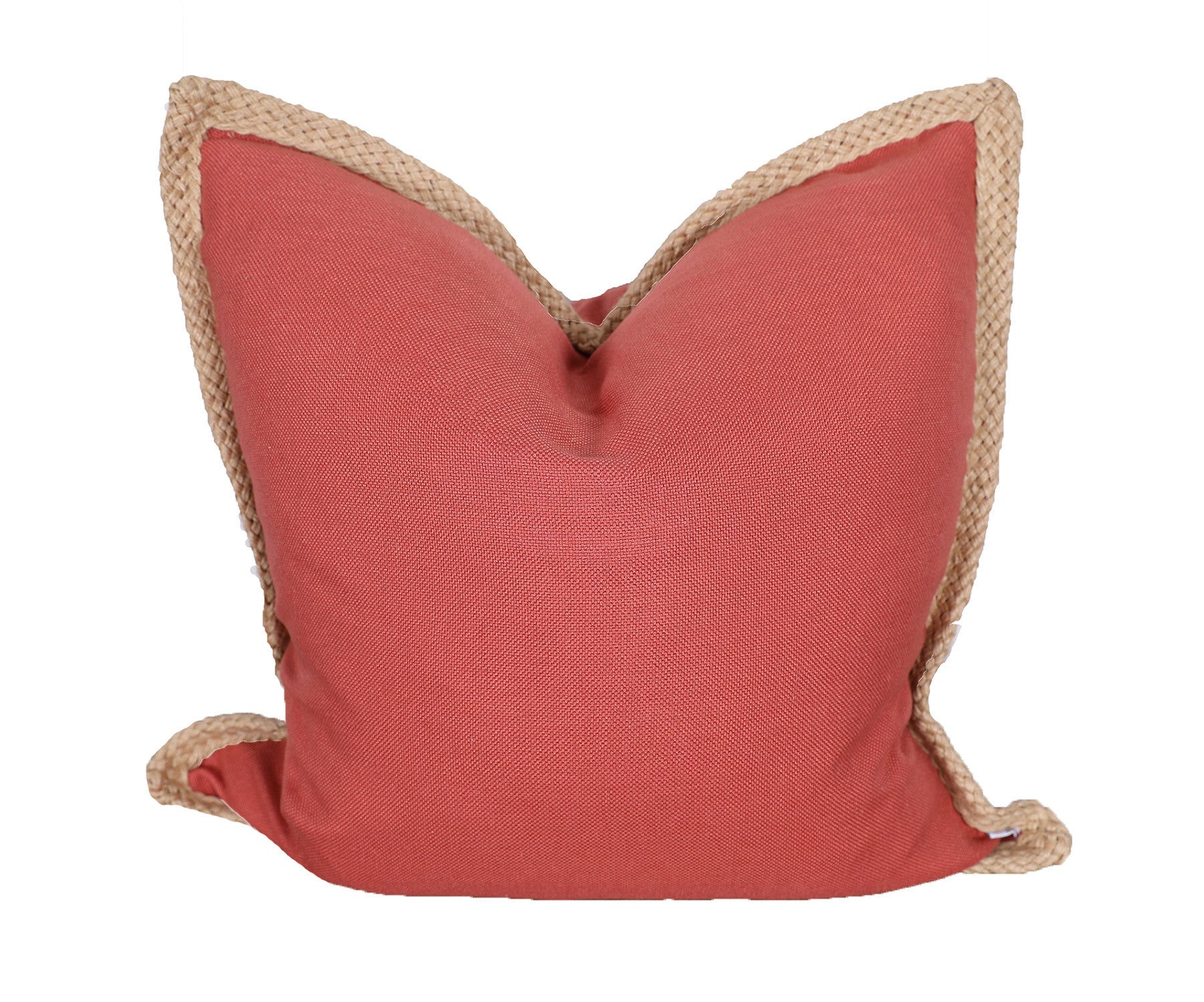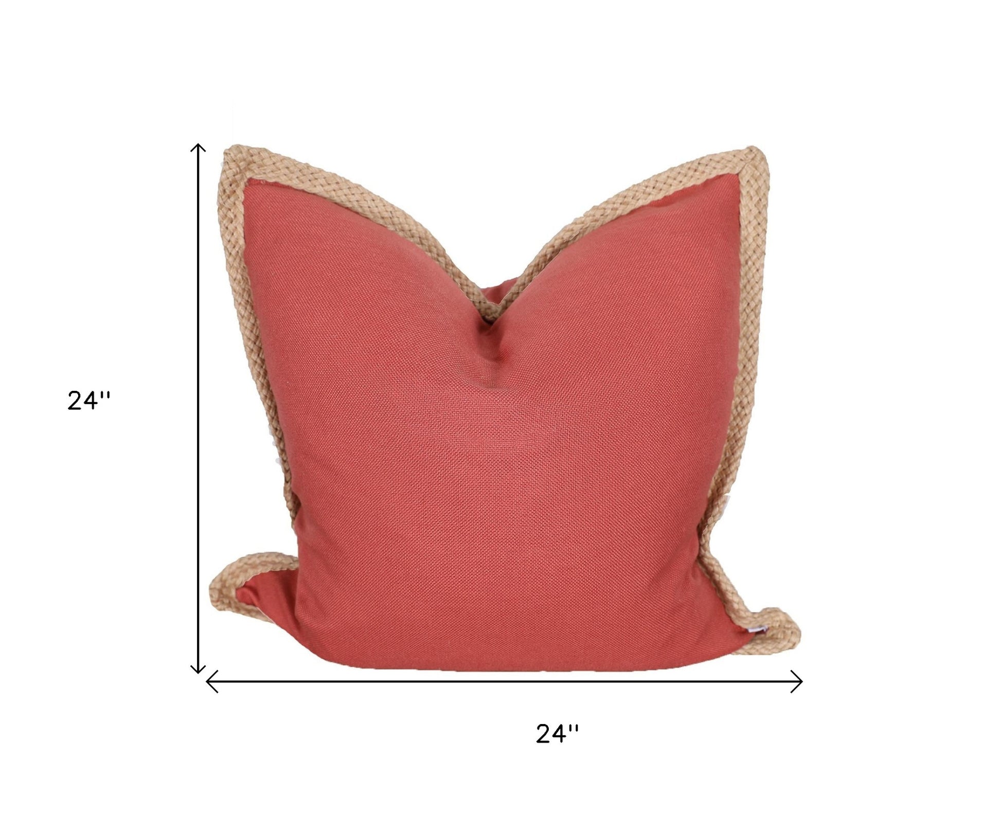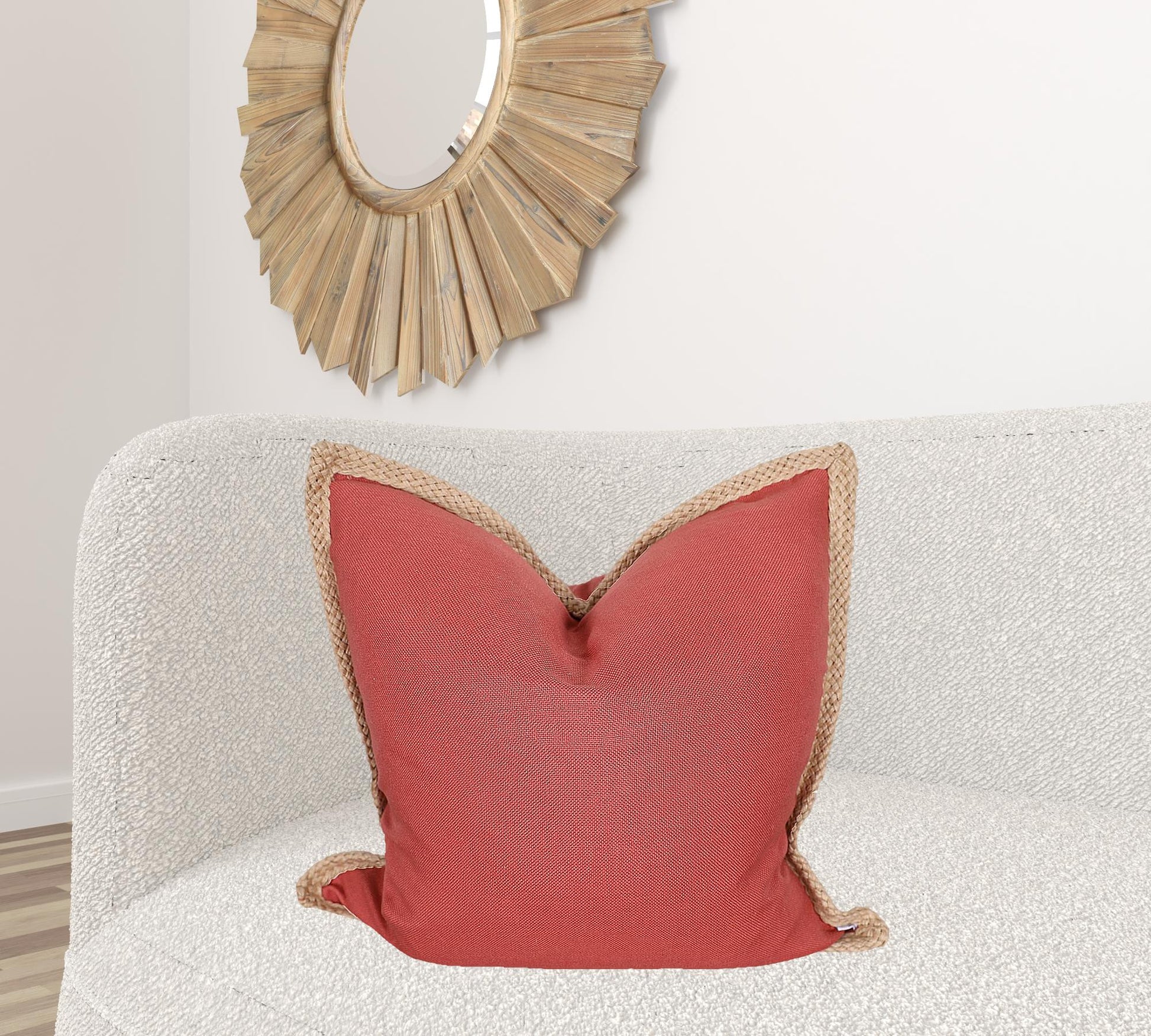 24" X 24" Brown and Red Polyester Zippered Pillow with Jute Trim