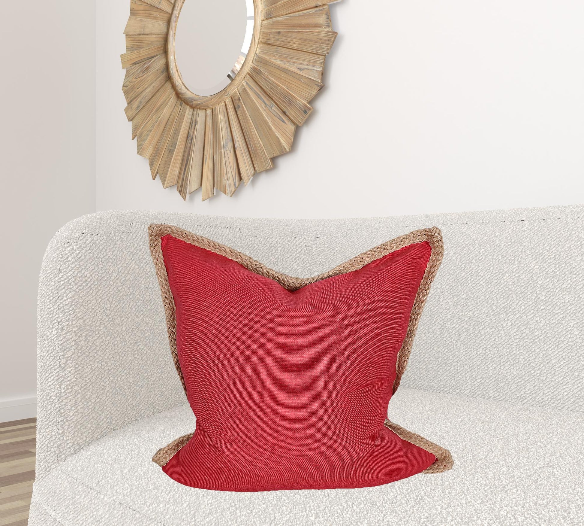 24" X 24" Brown and Red Polyester Zippered Pillow with Jute Trim