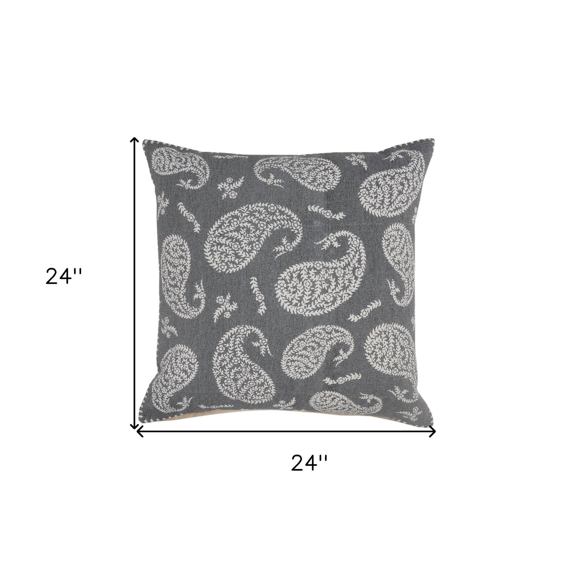 24" X 24" Gray And White 100% Cotton Geometric Zippered Pillow