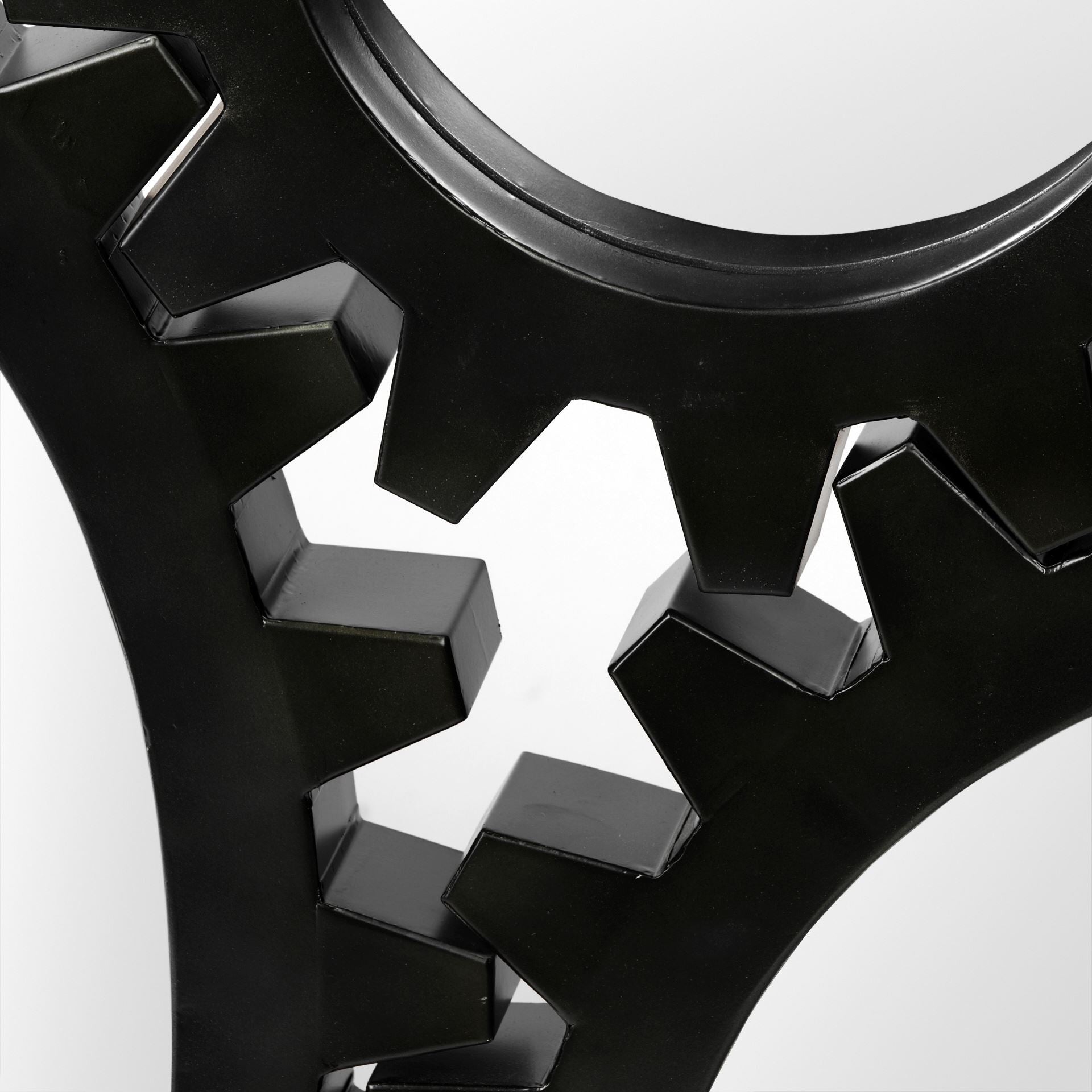 Artisan crafted resembling a cog, this 26" Black COG Round Metal Frame Wall Mirror will add noticeable variation to your space. Whether used alone or paired with other mirrors, this accent makes a huge difference in your decor. it is held in a dark metal frame; add it to any room and enjoy the exceptional sparkle that ships with it. dimensions: 26".