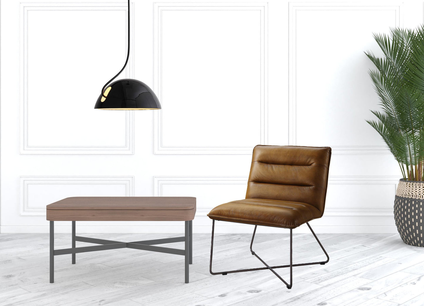 This 26" saddle brown top grain leather and brown solid color slipper chair is the perfect decorative yet functional accessory for your home. This sturdy top grain leather upholstered slipper chair comes in a chic solid saddle brown color to give your space just the right look. The sturdy inner frame is built with high quality manufactured wood, featuring a tufted back that is accented with soft and comfortable cushioning. The tufted cushions add fine designer detailing. 33" H x 26" W x 30" D