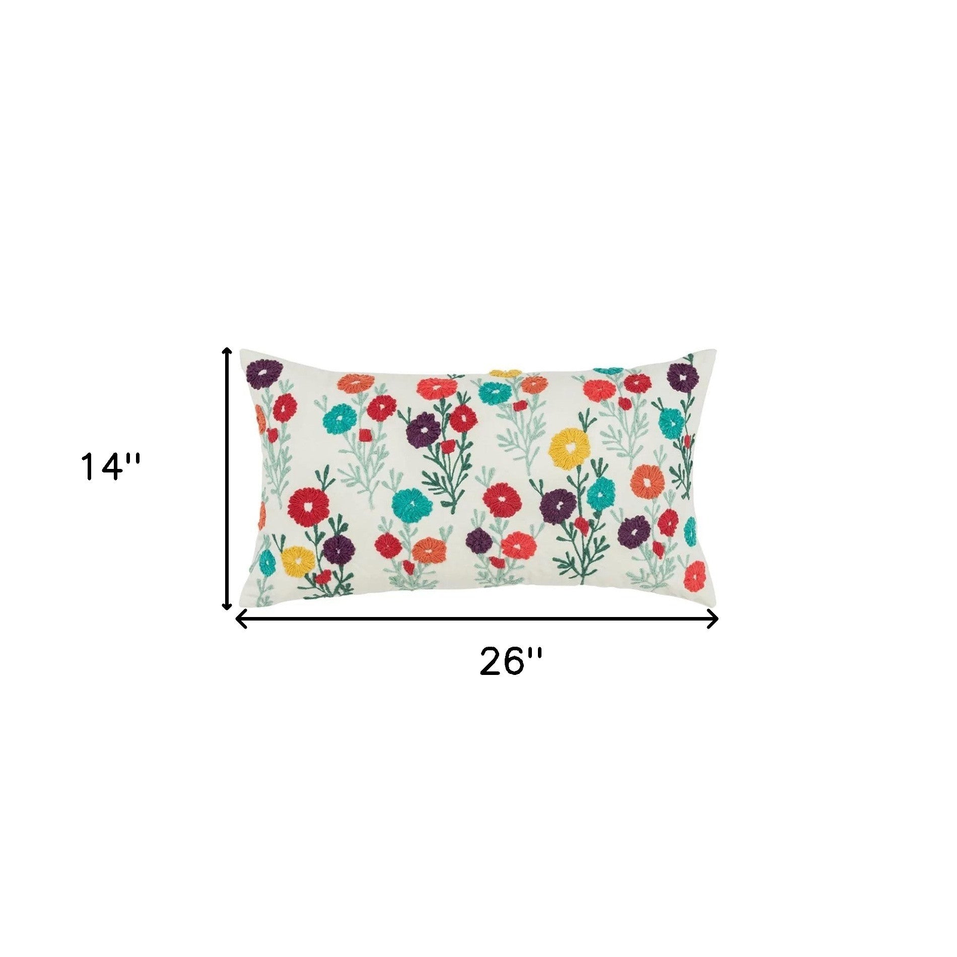 26" X 14" Blue and Green Floral Cotton Zippered Pillow