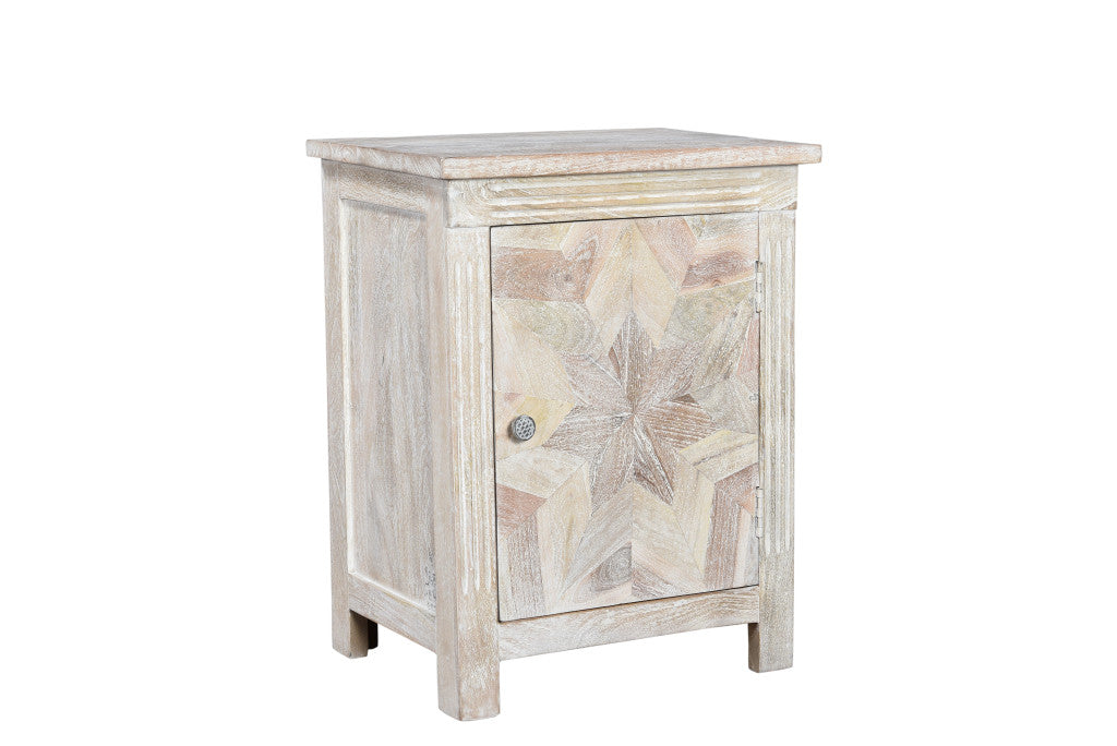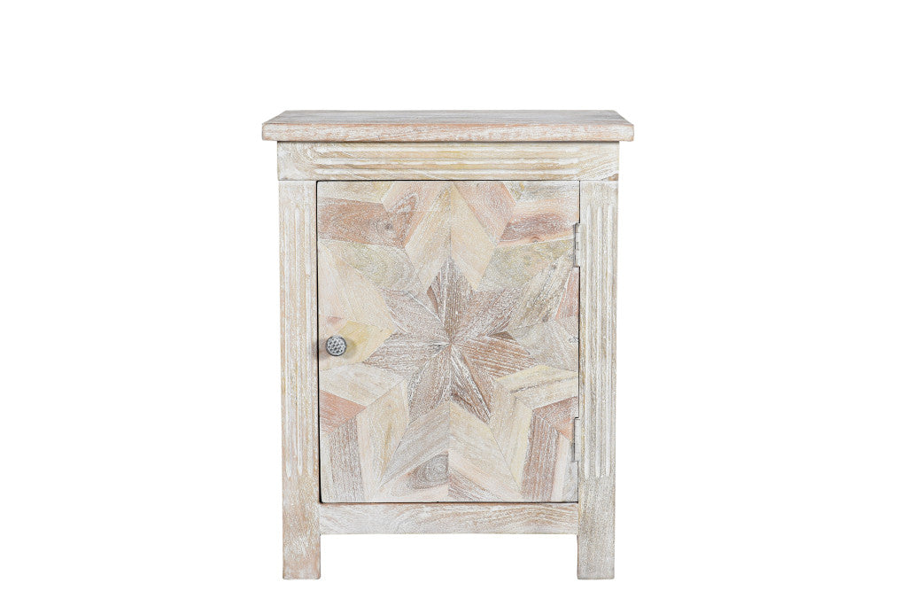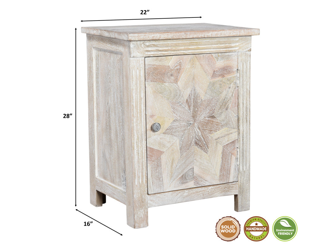 28" Distressed White Starburst Geometric Solid Wood Nightstand