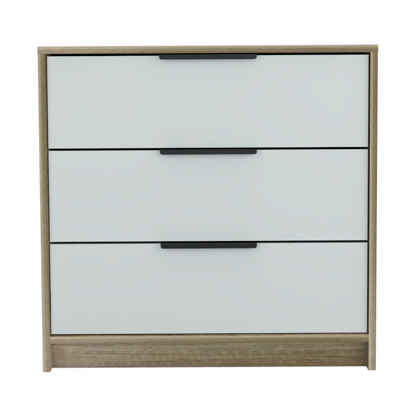 28" Light Oak And White Manufactured Wood Three Drawer Dresser