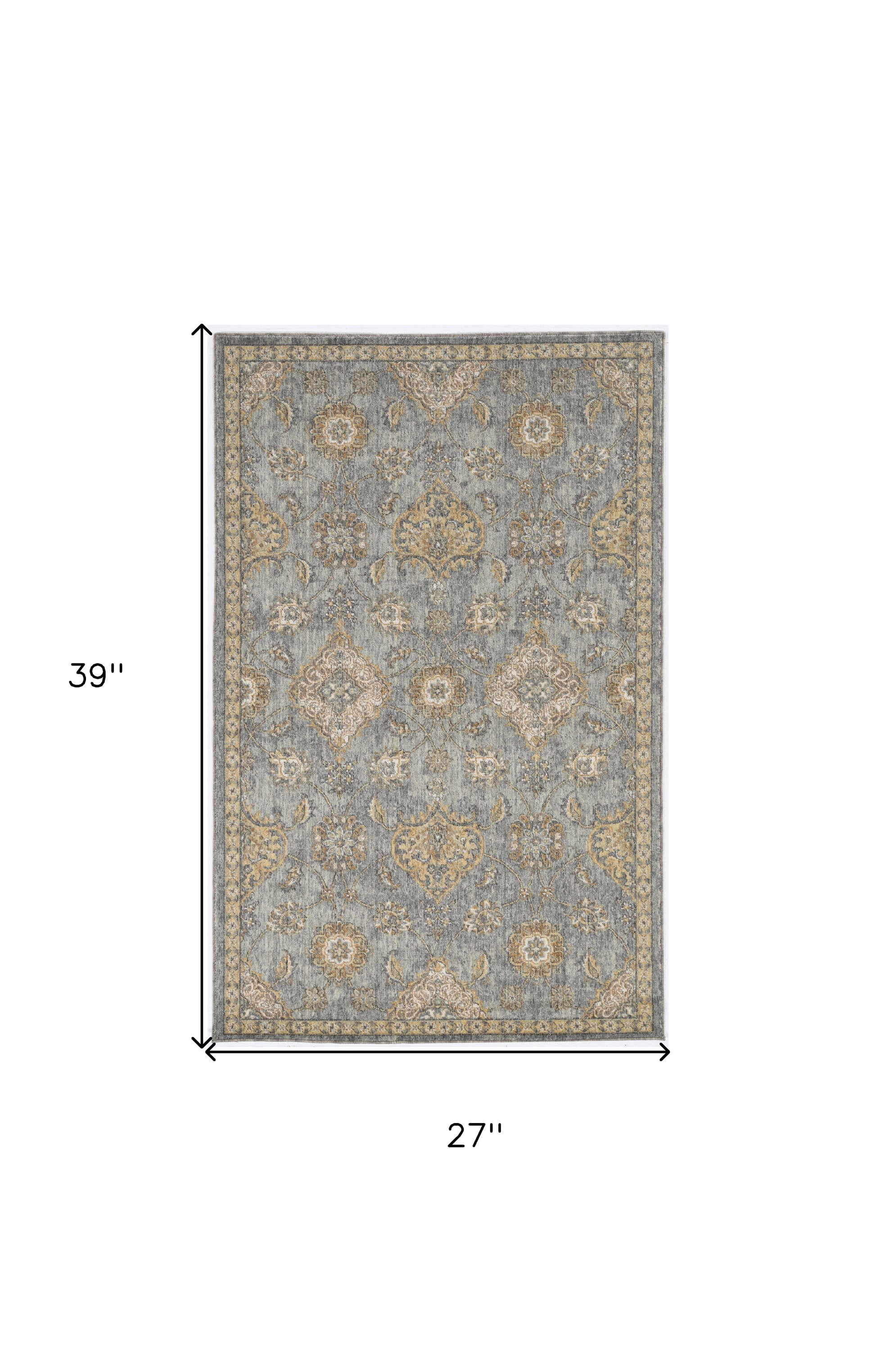 2'X3' Sage Green Machine Woven Vintage Traditional Indoor Accent Rug