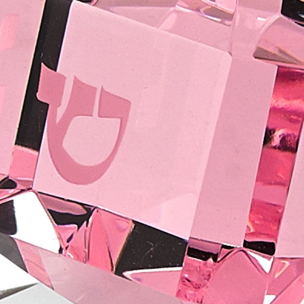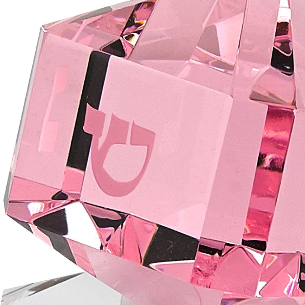 3 Mouth Blown Pink Dreidel On Crystal Stand