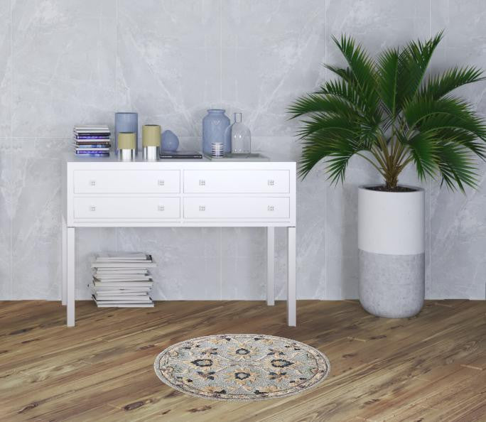 3' Round Beige and Blue Round Wool Floral Hand Woven Area Rug
