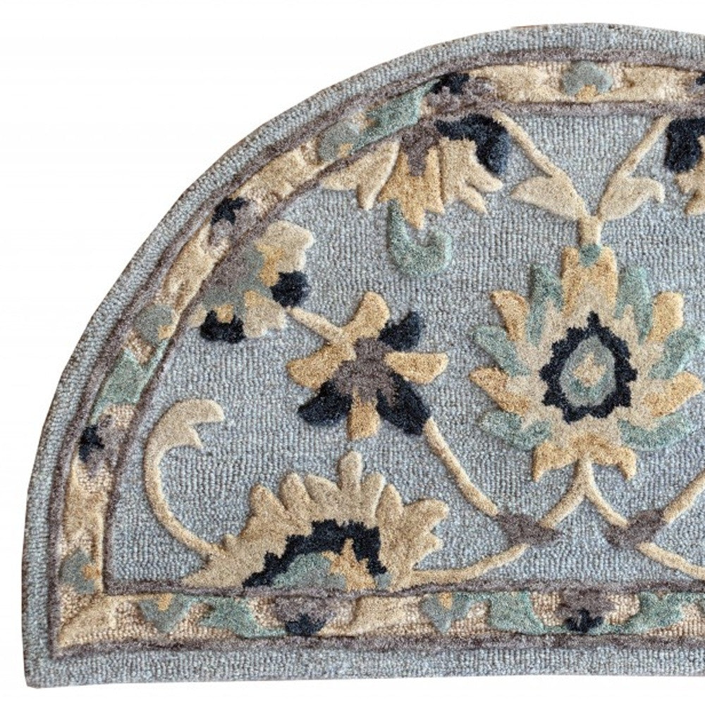 Add some artistry to your room with this 3-foot round beige and blue round wool floral hand woven area rug. This geometric round shaped rug features a floral pattern in beige and blue that combines a good looking print with a unique and updated shape. The mix of shape, color, and design gives this rug refreshing visual interest. Crafted by skilled artisans, this hand woven rug is genuine and unique. No two will be exactly alike. Place this area rug against a hardwood or tile floor and it will enliven your living space with style and sophistication. 0.5-inch H x 36-inch W x 36-inch D