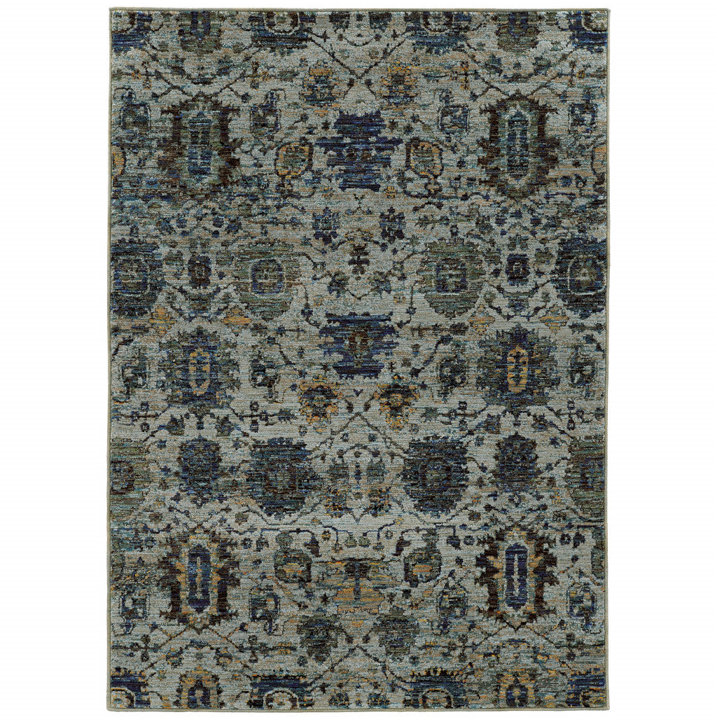 3' X 5' Blue And Navy Oriental Power Loom Stain Resistant Area Rug