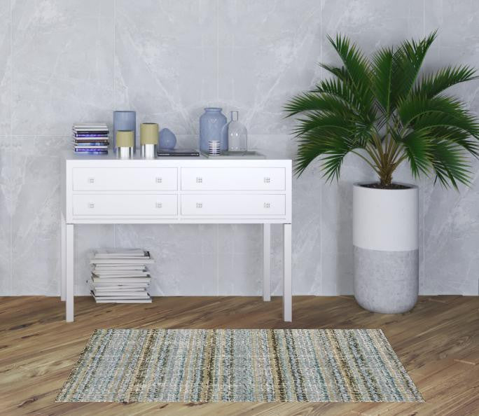 3' X 5' Blue Green Teal And Grey Abstract Power Loom Stain Resistant Area Rug