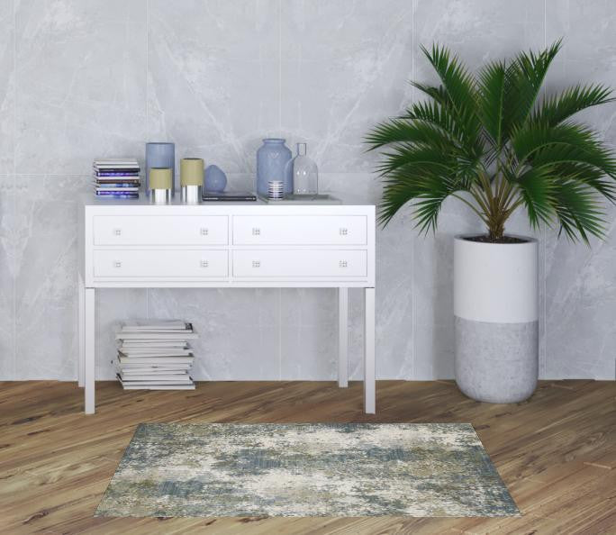 This 3' x 5' blue grey green and beige abstract power loom stain resistant area rug, is a great way to add warmth to a room. This rectangle shaped rug features a abstract design in blue grey green and beige to give it visual interest. A classic shape marries with good looking design for your space Ideal for spaces with kids and pets, this rug is stain resistant to help repel stains and spilled liquids. Place this area rug against a hardwood or tile floor and it will enliven your living space with style and sophistication. 0.31" H x 39.37" W x 60.24" D