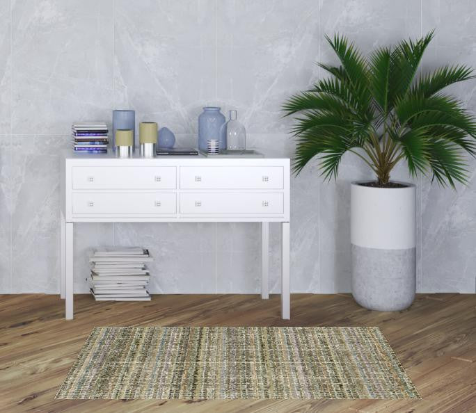 3' X 5' Green Green Grey And Purple Abstract Power Loom Stain Resistant Area Rug