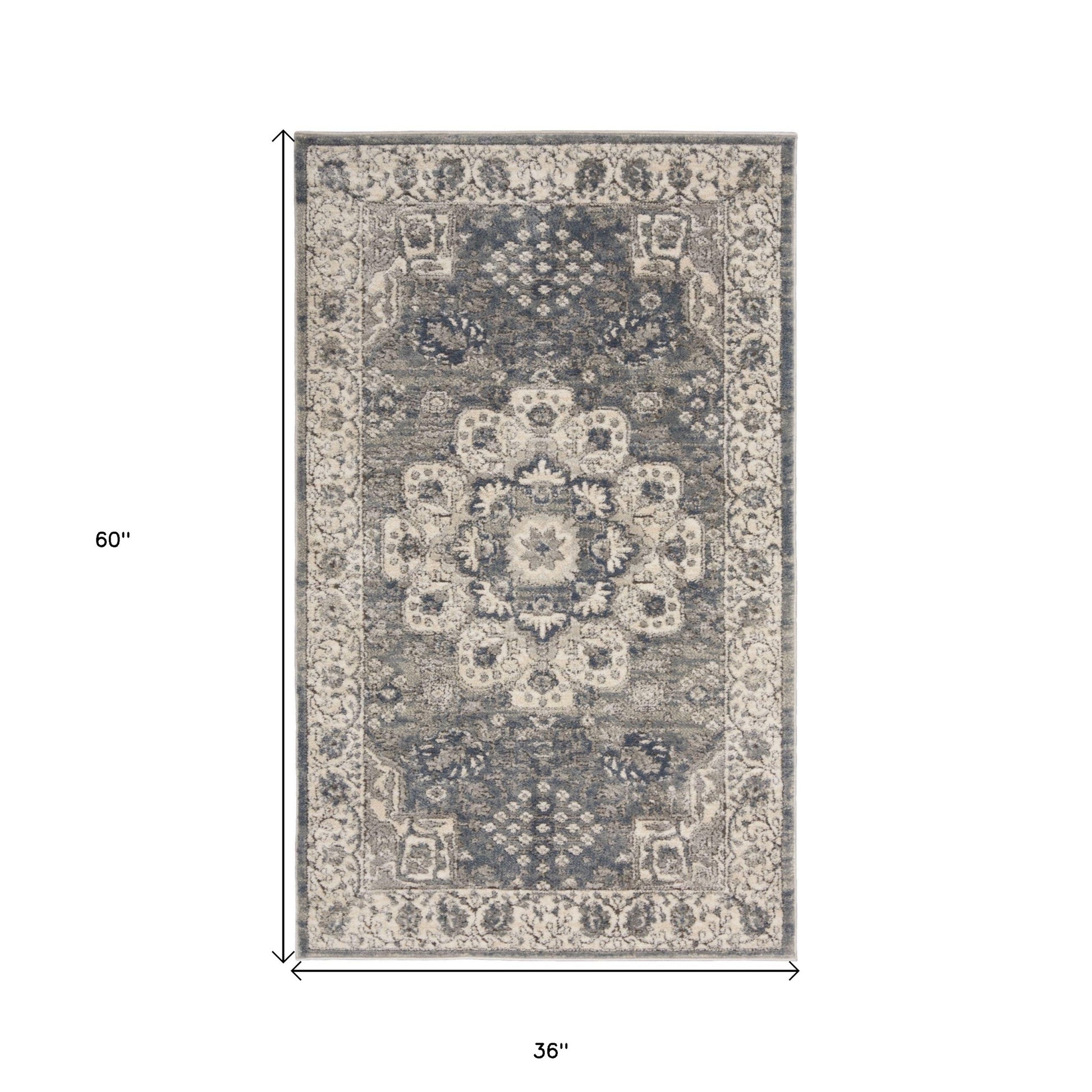 3' X 5' Grey And Ivory Oriental Power Loom Non Skid Area Rug