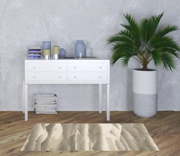 3' X 5' Grey Blue And Teal Abstract Power Loom Stain Resistant Area Rug