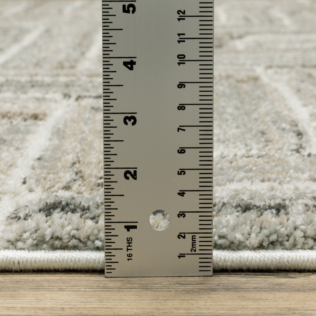 Set an inviting tone in your space with this 3' x 5' ivory beige grey brown pale blue and charcoal geometric power loom stain resistant area rug. This rectangle shaped rug features a geometric design in ivory beige grey brown pale blue and charcoal to give it visual interest. A classic shape marries with good looking design for your space Ideal for spaces with kids and pets, this rug is stain resistant to help repel stains and spilled liquids. Area Rugs help to give warmth and sense of home to your space. 1" H x 39.37" W x 59.84" D