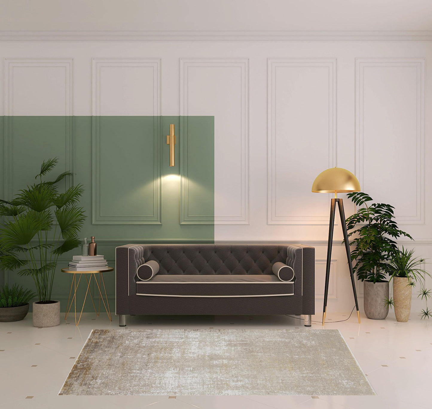 Set an inviting tone in your space with this 3' x 5' taupe ivory and gold abstract power loom distressed area rug with fringe. This rectangle shaped rug features a abstract design in taupe ivory and gold to give it visual interest. A classic shape marries with good looking design for your space This superior Turkish rug represents the highest quality and is built to last. Tassel ends bring a timeless and fashionable look to your interior. Area Rugs help to give warmth and sense of home to your space. 0.32" H x 37" W x 60" D