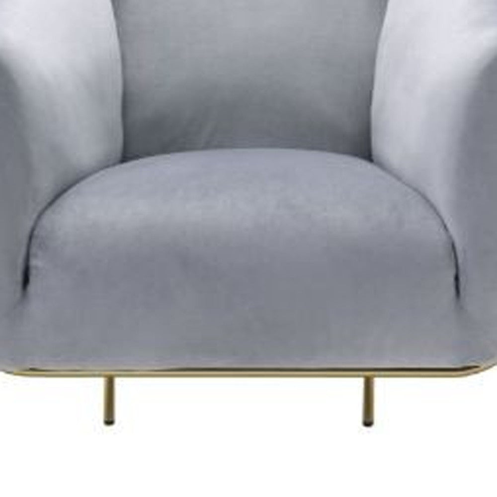 30" Gray Velvet And Gold Solid Color Barrel Chair