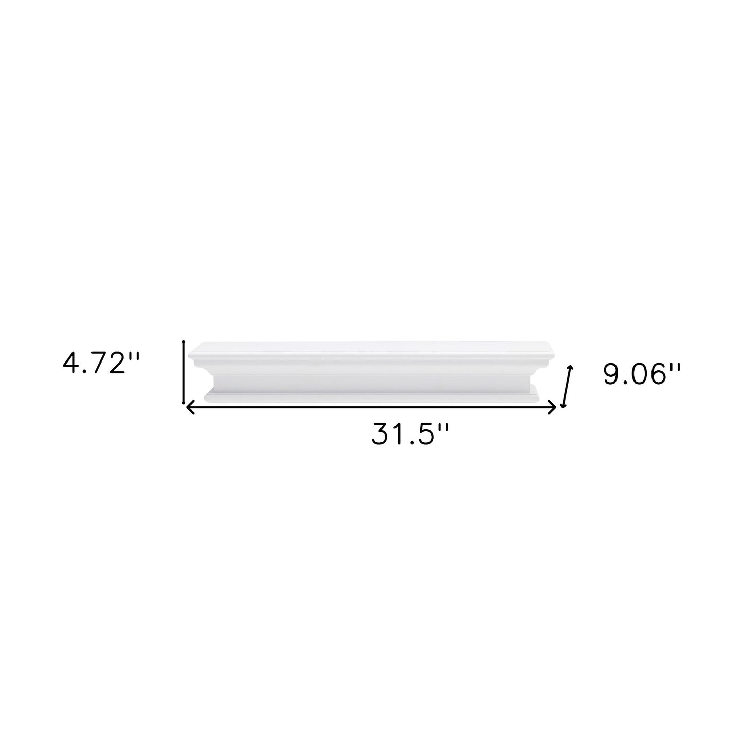 Spruce up your home with the Classic White Long Floating Wall Shelf, a simple design of sheer elegance and sophistication with the ability to elevate your living area or kitchen space. Crafted from mahogany wood and MDF, the all white semi glossy piece makes a statement while also serving as a storage space for your favorite frames, books or dinnerware. This clean-cut uncomplicated design has a crown molding on top creating a sense of depth. Bunch a few of them evenly on your wall for a refined look or scatter them out in different sizes for a more asymmetrical style. 4.72" x 31.5" x 9.06"