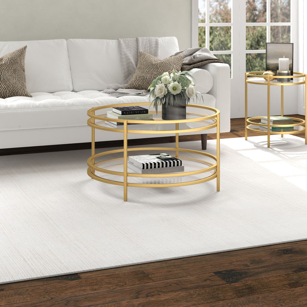 Keywords | glass round coffee table shelf, gold glass round coffee table, glass round coffee table, round coffee table shelf, 32" gold glass round coffee |