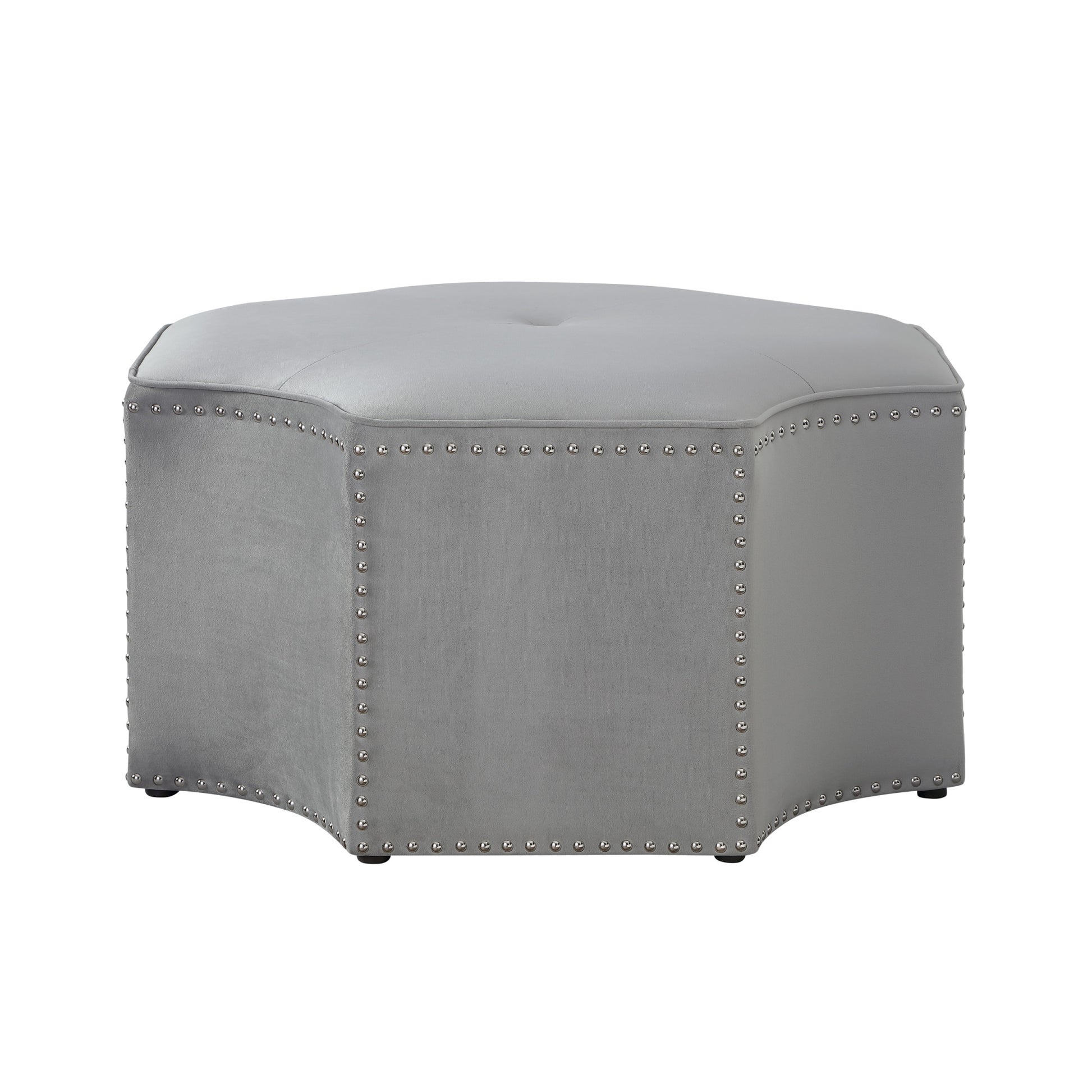 Add a good looking decorative accent to your space that is also practical for seating. This chic cocktail ottoman is larger in size and designed to serve as a make-shift coffee table during parties. The surface is wide and flat which is not only suitable for a footrest or seat but also ready to hold trays of appetizers, drinks, or desserts. Expertly upholstered with padding in a soft solid color velvet, this ottoman is as comfortable as it is good looking. Fine detailing such as nailhead trim give this ottoman a rich and elegant look Ottomans are multi-functional additions to your space that add fashion and practical value. 18" H x 33" W x 33" D
