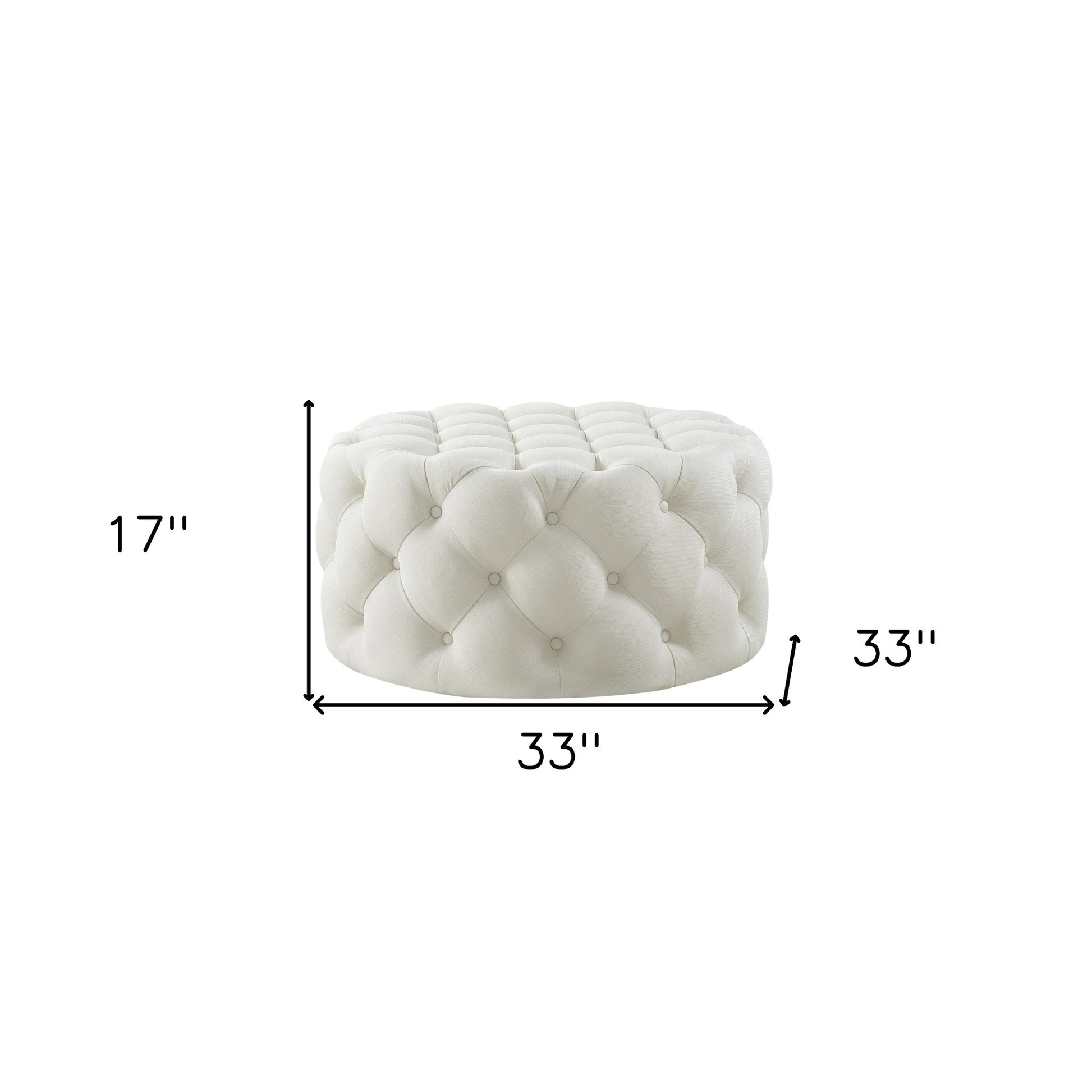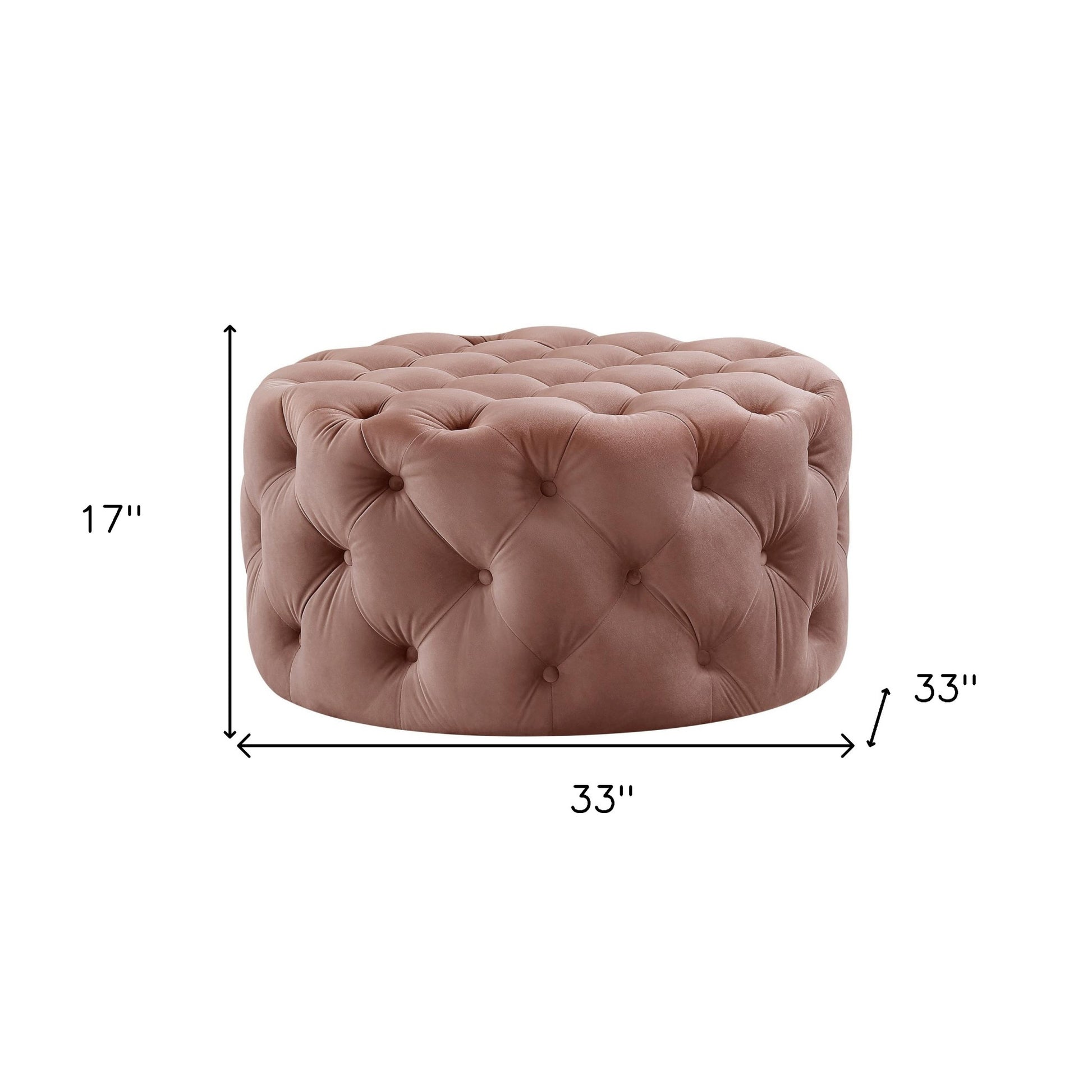 33" Blush Velvet And Black Rolling Tufted Round Cocktail Ottoman