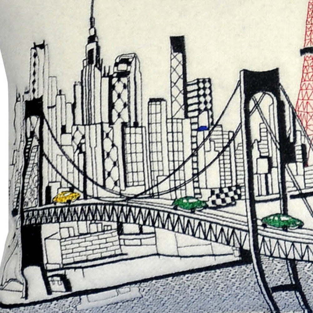 Showcase one of the most famous cities in the world with our Cream Color Tokyo Daylight Skyline Queen Size Lumbar Decorative Pillow. This daylight view from Tokyo Bay, is a stunning way to represent one of the most important and visited cities in the world. The gorgeous art features famous architecture and landmarks including Mt. Fuji in the background, rendering a modern whimsical way to bring this iconic cityscape to life. Made of a wool/nylon blend, this high quality stitched decorative pillow features black on white embroidered artwork mixed with pops of color that highlight important and recognizable icons from this fabulous city. This pillow makes a great gift, decorative accent and conversation piece. 4" x 35" x 14"