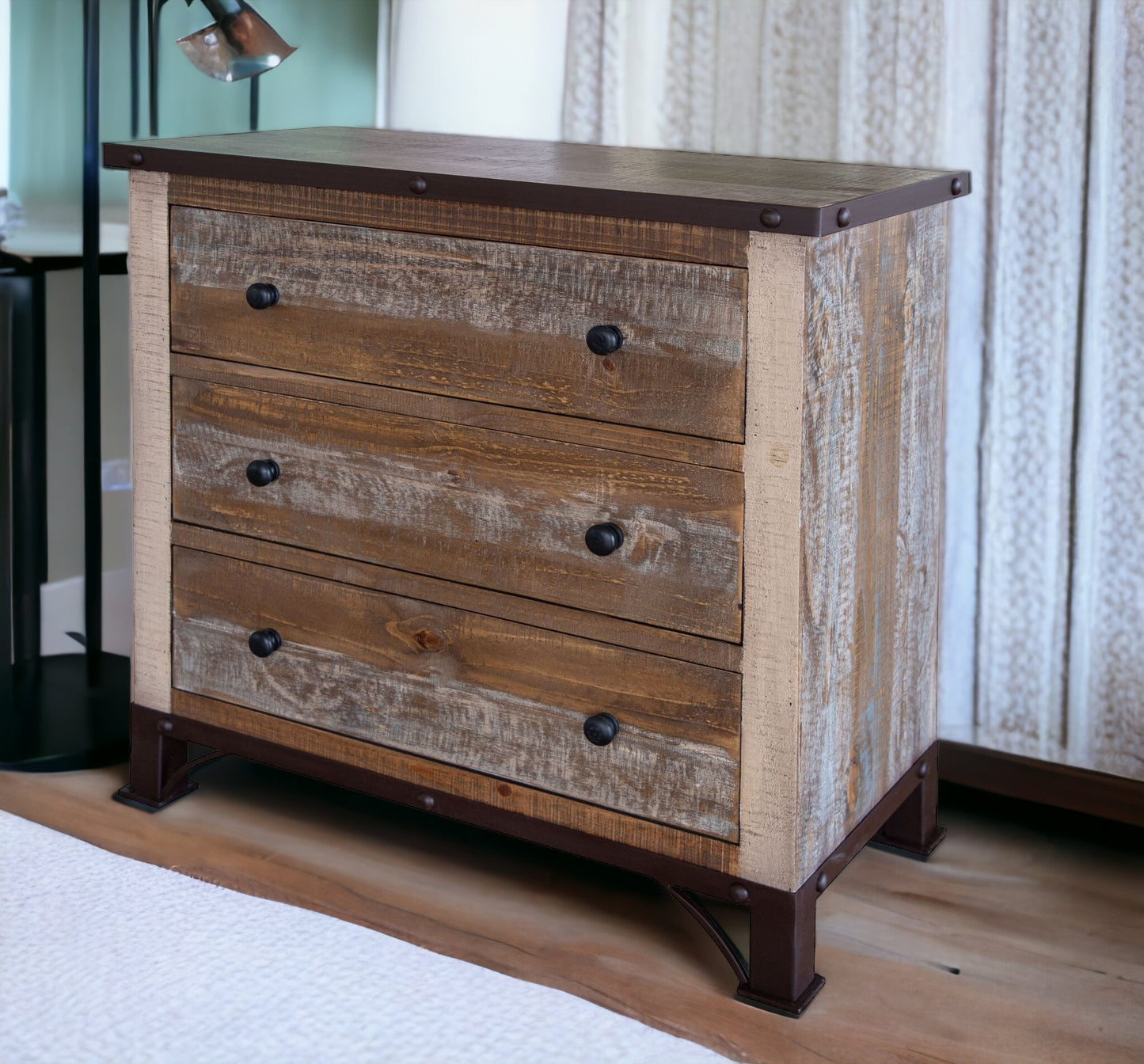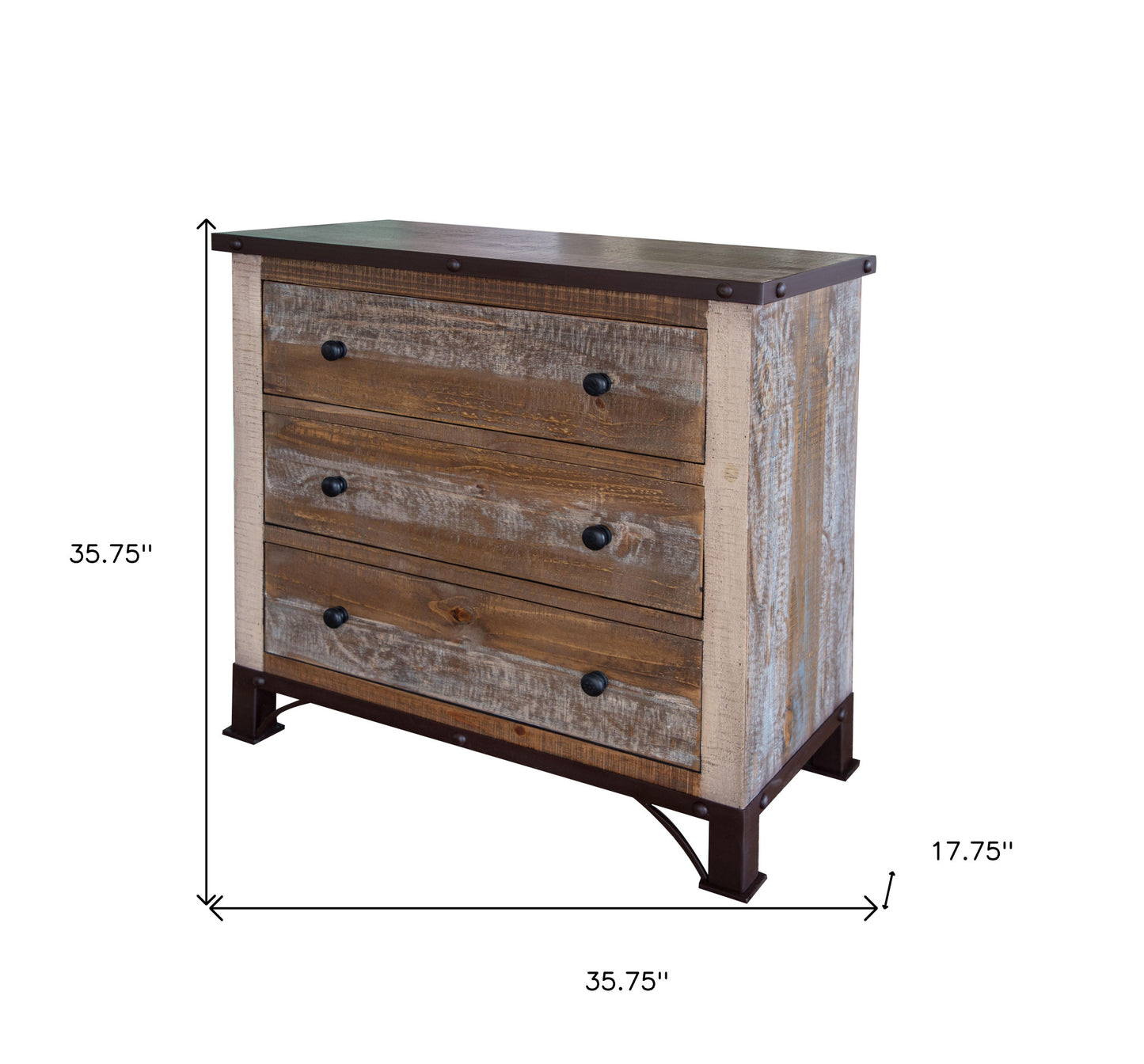 Make your room functional and visually enticing with this masterful 36" brown solid wood three drawer standard chest. This chest of drawers is tall and lean making it an ideal choice for smaller rooms or as an additional storage option in larger rooms. Equipped with three easy open drawers for practical and good looking clothing storage. This dresser is built to last from high quality solid wood,. 35.75" H x 35.75" W x 17.75" D