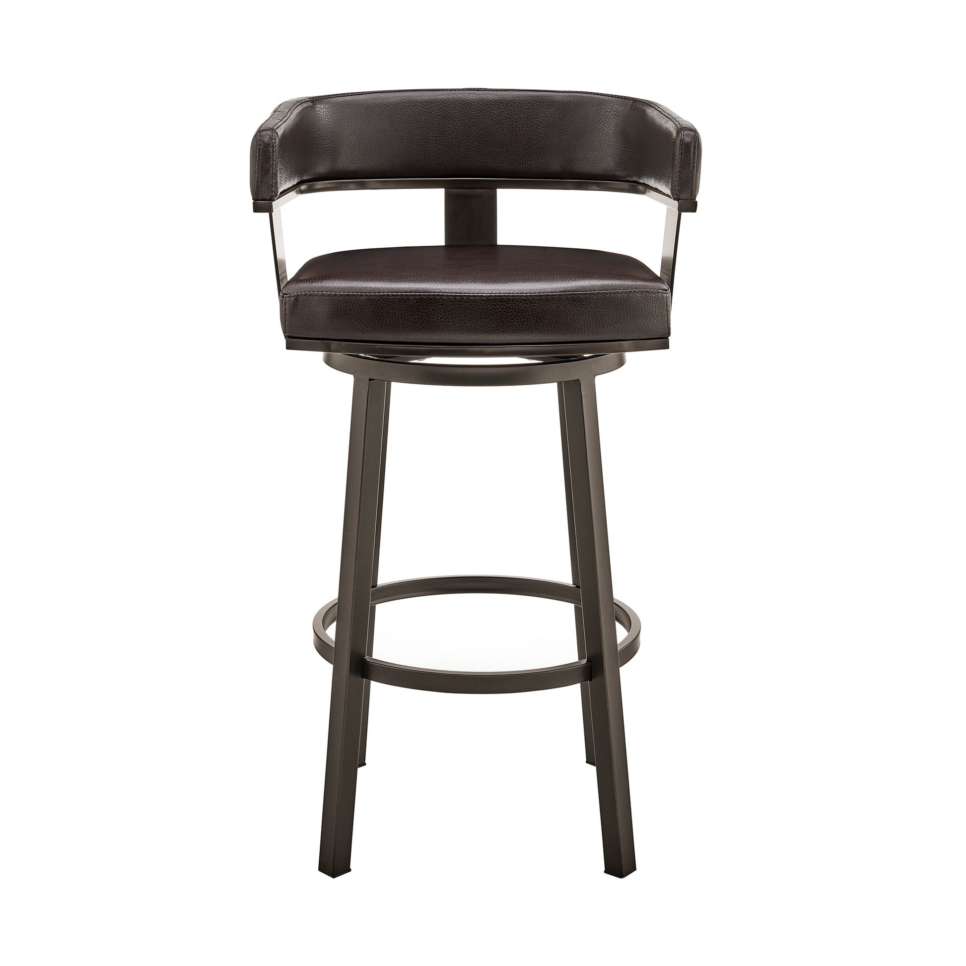 38" Chocolate Faux Leather And Iron Swivel Low Back Bar Height Chair