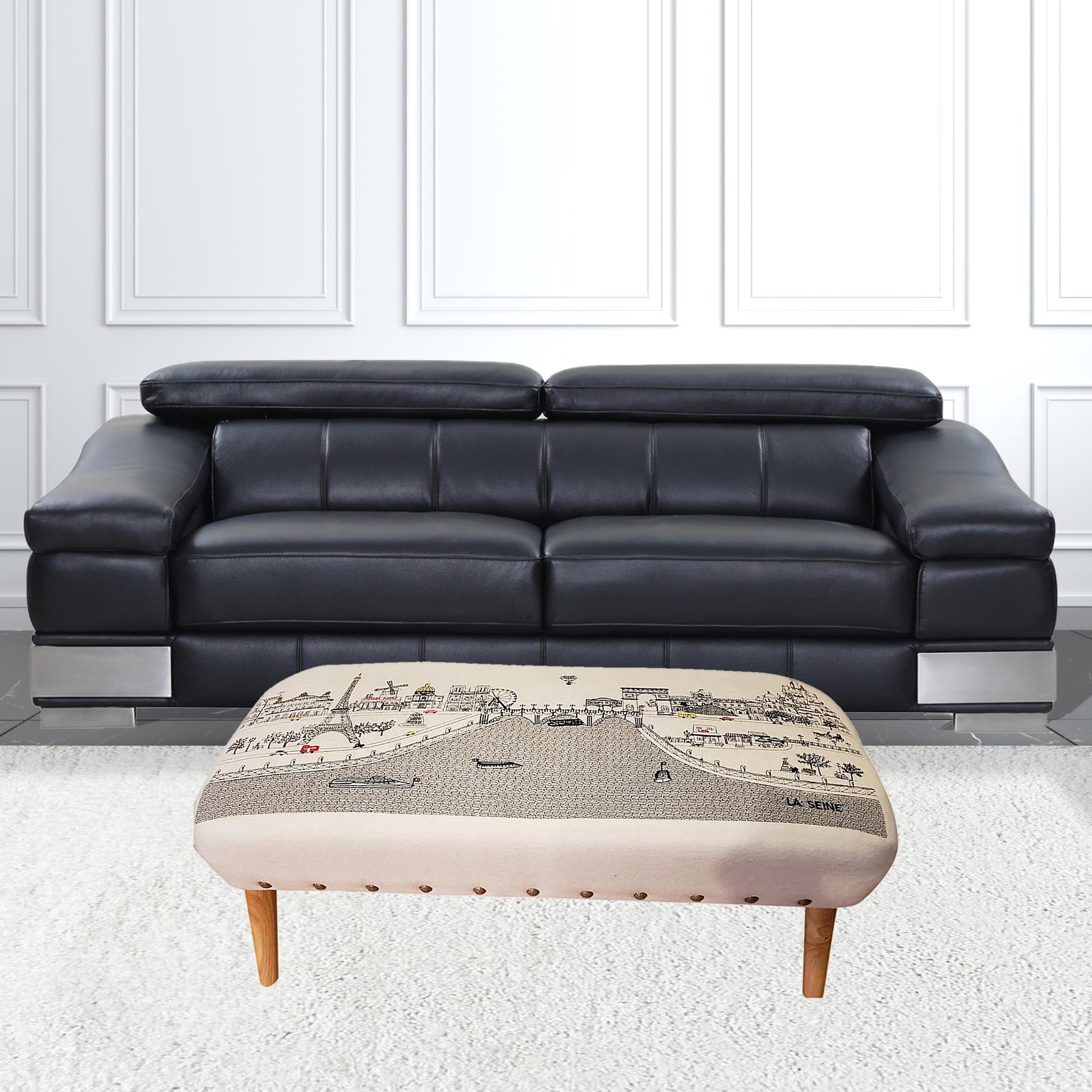 Get ready to relax with this 38" cream wool and brown ottoman. Fine detailing such as nailhead trim give this ottoman a rich and elegant look Easy to blend into most any room, a ottoman is a way to add a good looking accent to your space that can also be practical and useful. . 17" H x 38" W x 16" D