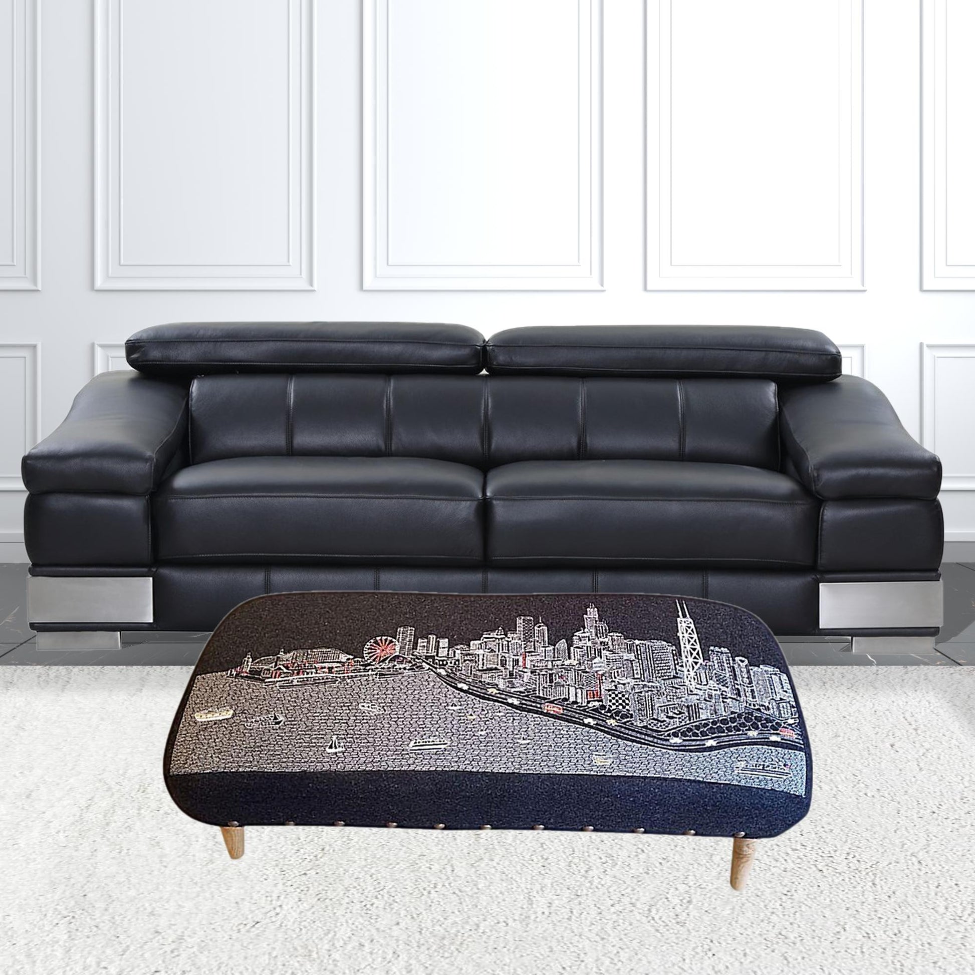 Practicality and fashion mix together with this handy 38" gray wool and brown ottoman. Fine detailing such as nailhead trim give this ottoman a rich and elegant look Ottomans are multi-functional additions to your space that add fashion and practical value. 17" H x 38" W x 16" D