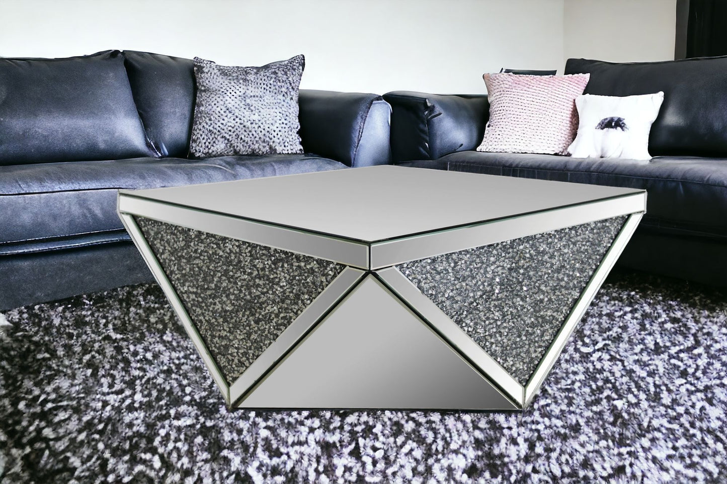 Give your living room, family room, or office the perfect anchor piece with this 38-inch silver glass square mirrored coffee table. This table features an updated monotone color scheme with silver as the main color on both the glass top and the manufactured wood base. Reflective pieces of mirrored glass give this table a glamorous and unique look. This square table features a fresh and stylish shape to give your room a visually pleasing accent. If you're looking for something that can fit into a living area, bedroom, or office, this coffee table is for you. This coffee table is the sturdy, reliable and stylish answer to your living room needs. 19-inch H x 38-inch W x 38-inch D
