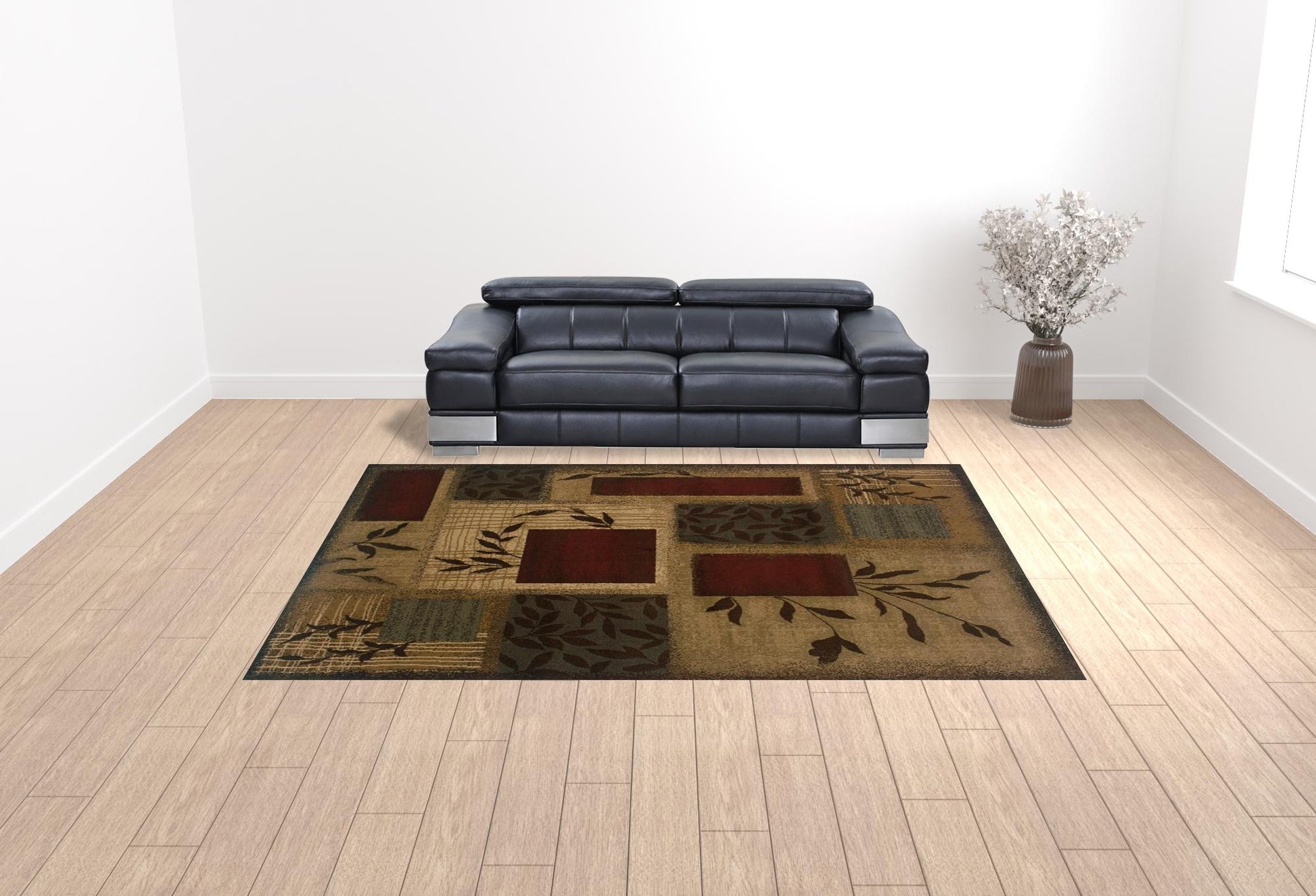 The charismatic blend of bolds and neutrals in this Beige and Red Floral Area Rug sets the tone for sophisticated luxury. The warm-toned beige and tan in the backdrop is flaunted by the red wine geometric accents and the swirly vines in wood brown color, creating a balanced contrast. The precisely machine-woven polypropylene construction makes it easily maintainable with its inherently stain-resistant property. Stands on the verge of vintage elegance and modern grace, this impressive area rug will add a dimension to your floor, upholding the aesthetics of both traditional and contemporary styling. 1" x 118.11" x 153.54"
