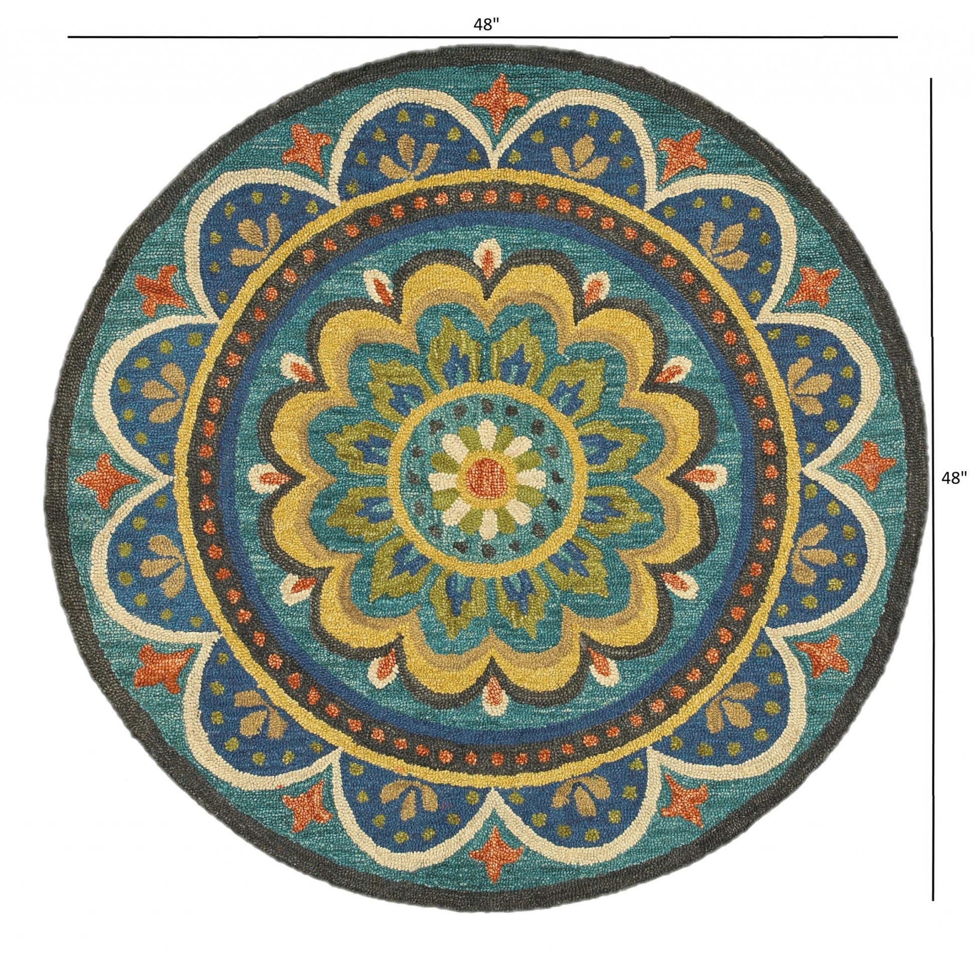 6' Blue Round Wool Geometric Hand Tufted Area Rug