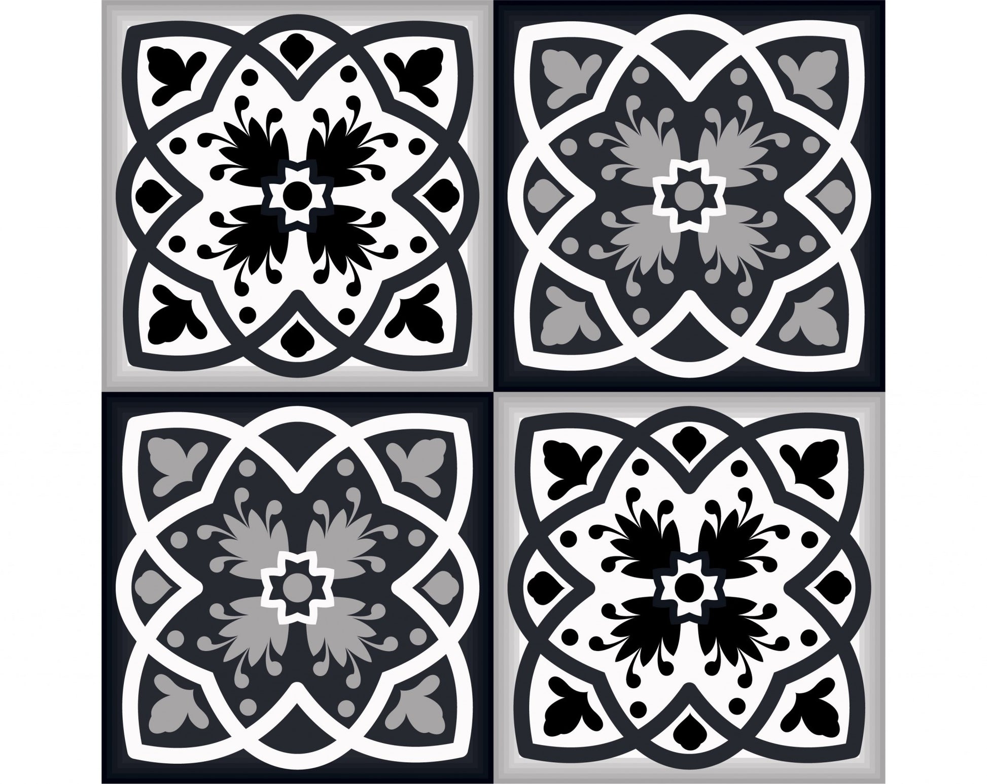 6" X 6" Black White And Gray Baz Peel And Stick Removable Tiles